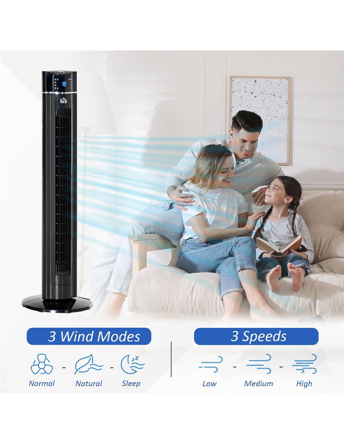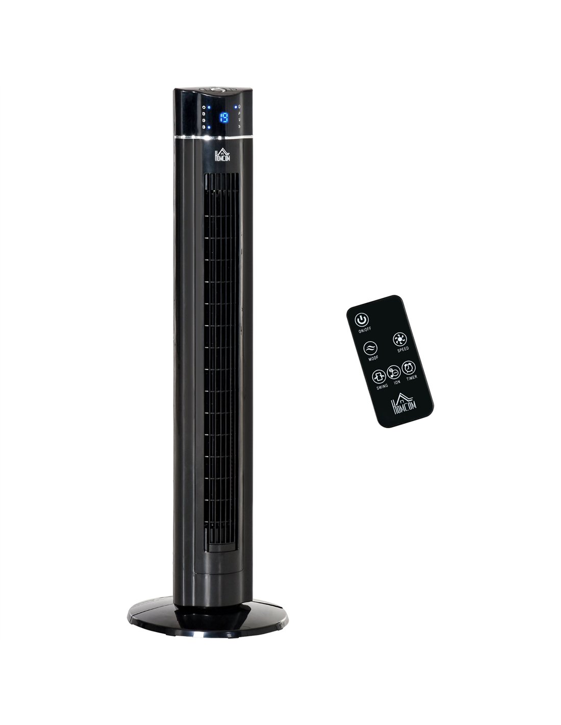 HOMCOM 42" Anion Tower Fan Cooling for Bedroom with 3 Speed, 3 Modes, 8h Timer, Oscillating, LED Panel, Remote Controller, Black