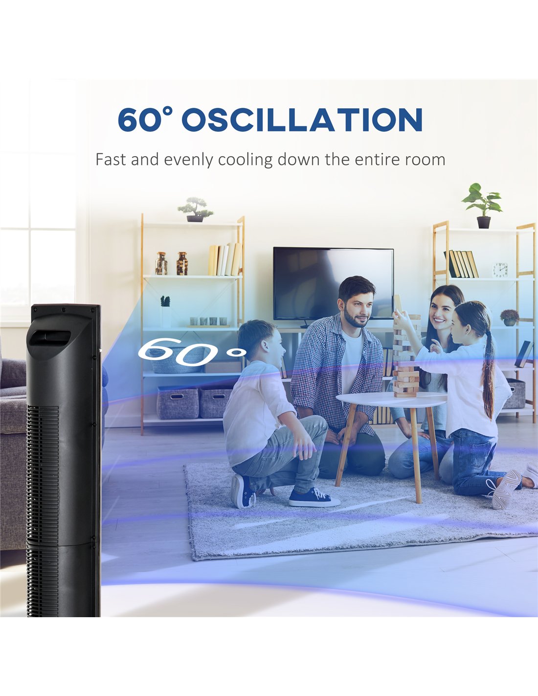 - 60-degree oscillation function direct exactly the air flow where you need it to