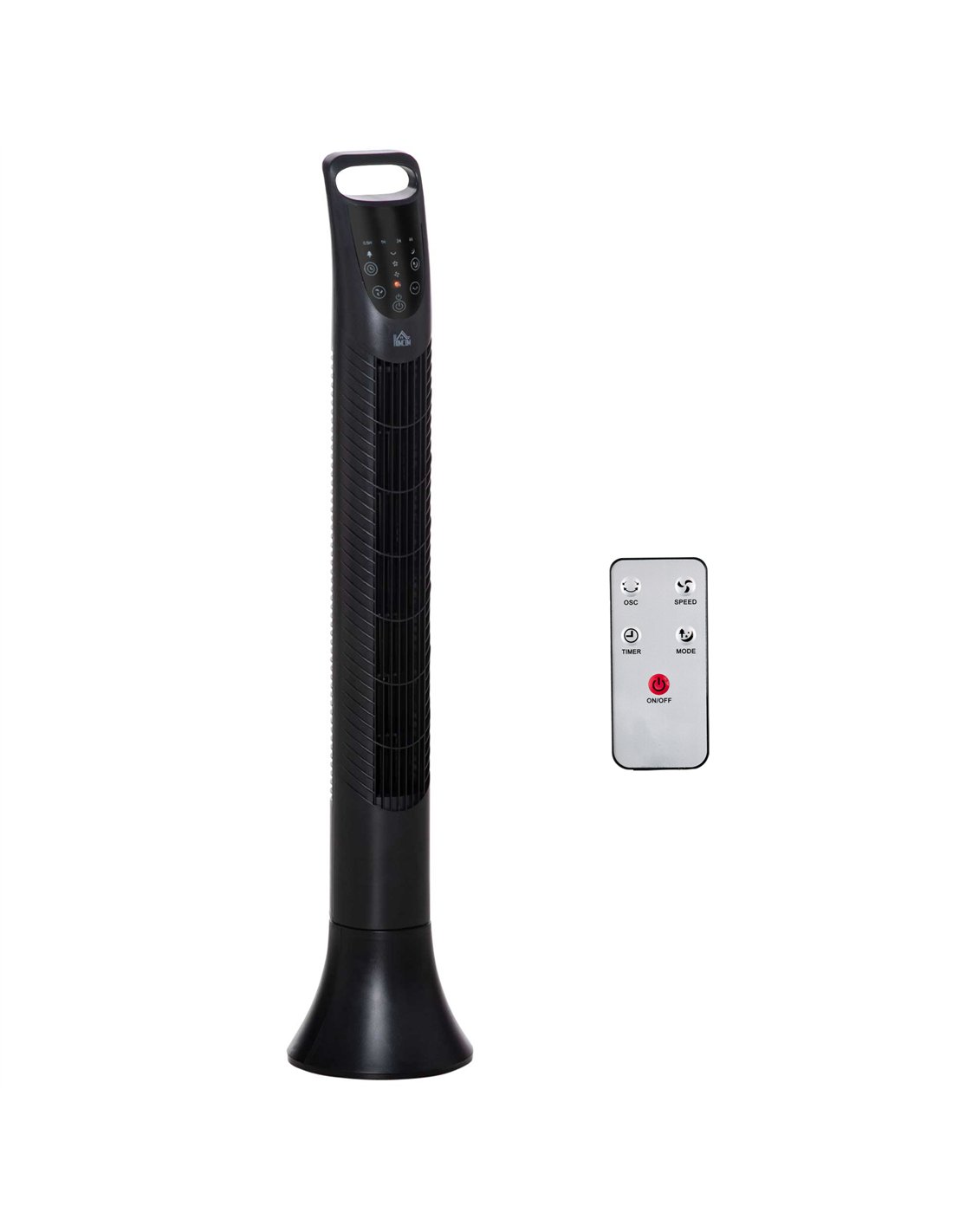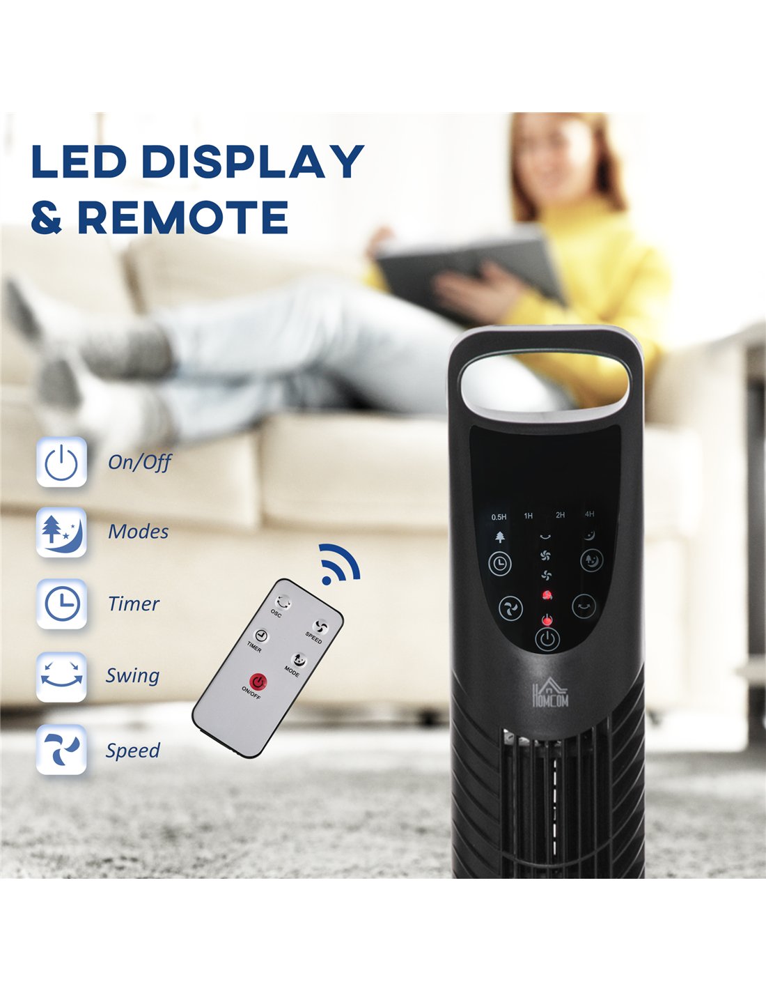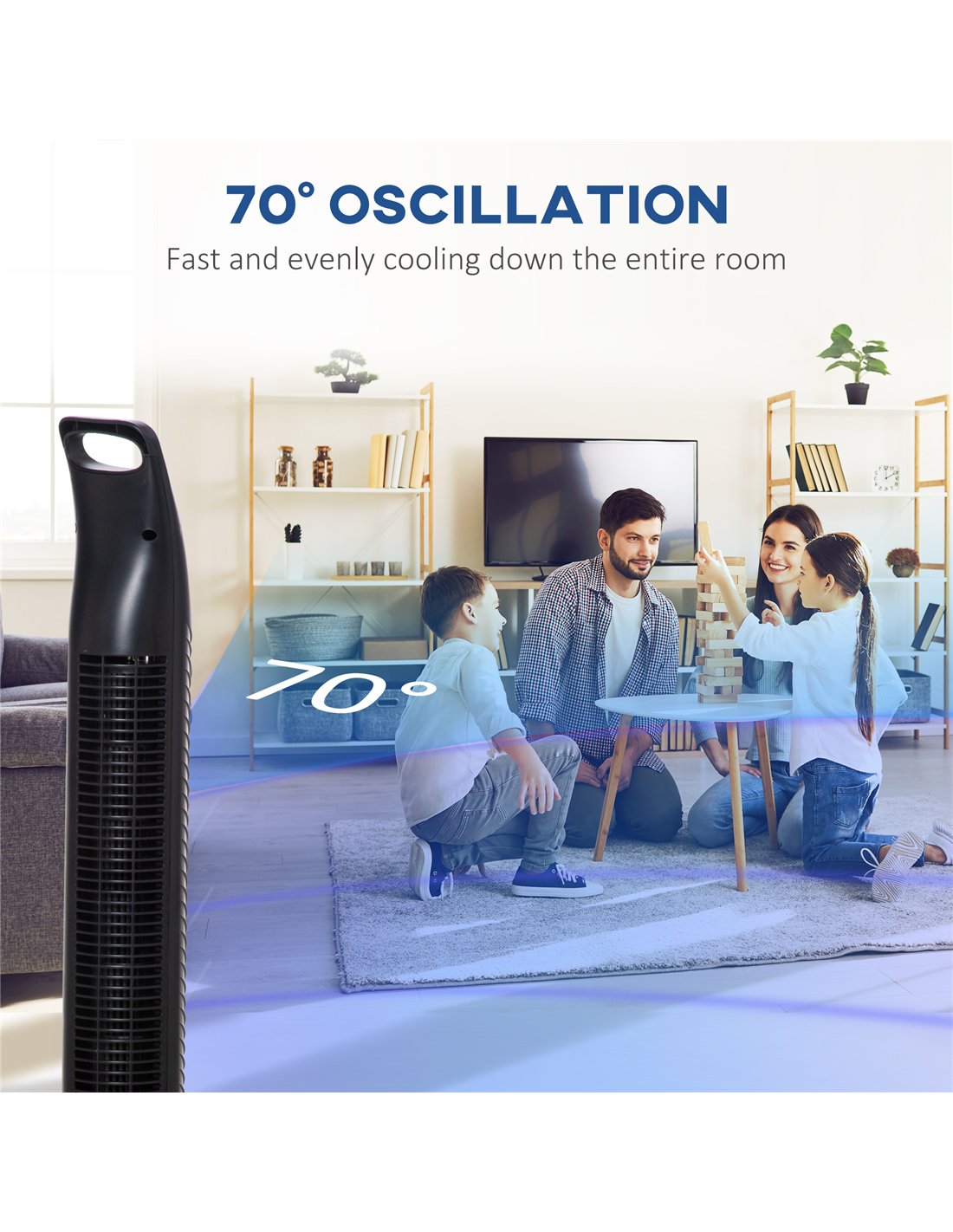 HOMCOM 36'' Freestanding Tower Fan, 3 Speed 3 Mode, 7.5h Timer, 70 Degree Oscillation, LED Panel, 5M Remote Controller, Black
