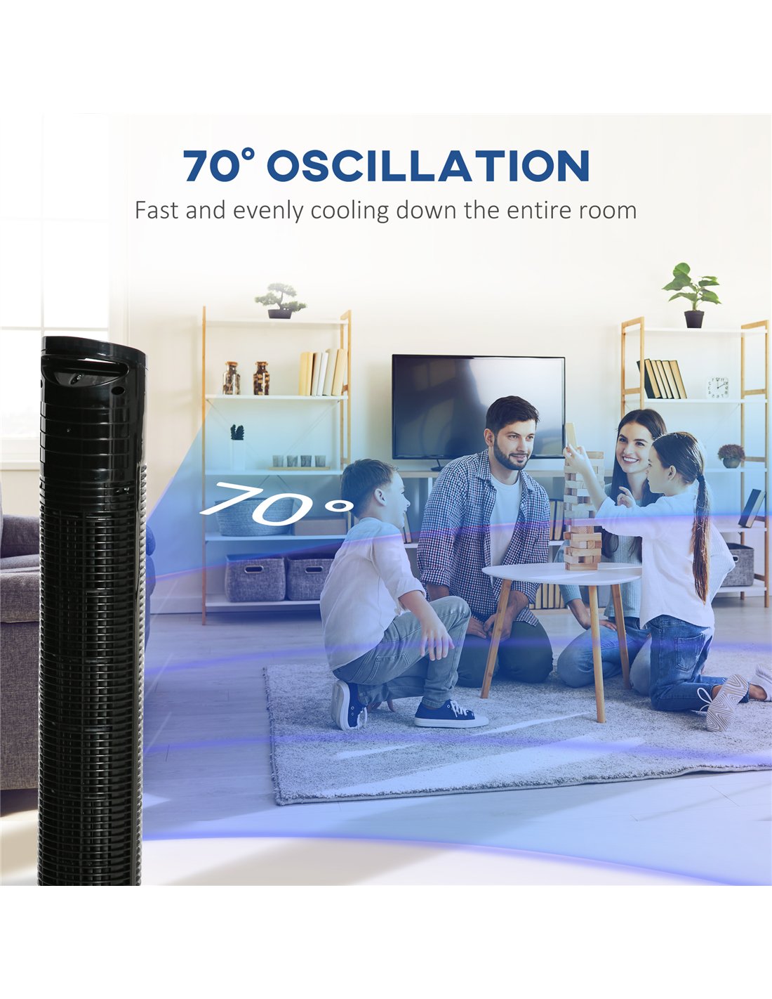 - 70-degree oscillation function direct exactly the air flow where you need it to