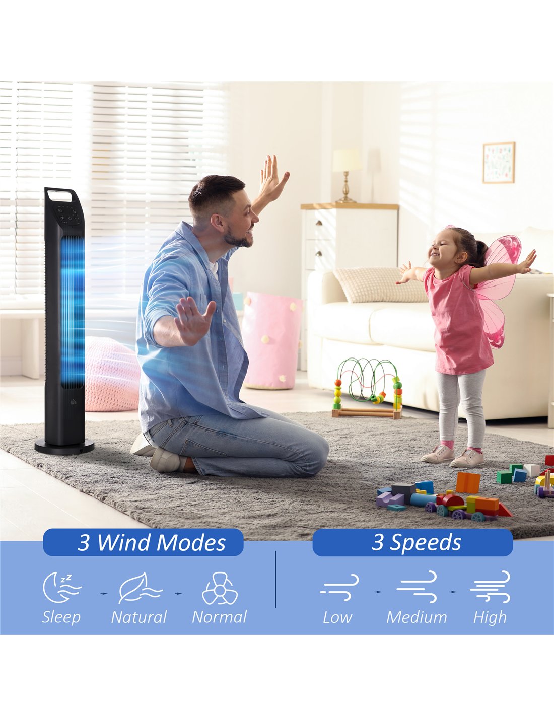 HOMCOM 31" Oscillating Tower Fan with Remote Control, 4H Timer, 3 Speed 3 Modes, Quiet Electric Floor Standing Fan for Home Bedroom Office, Black