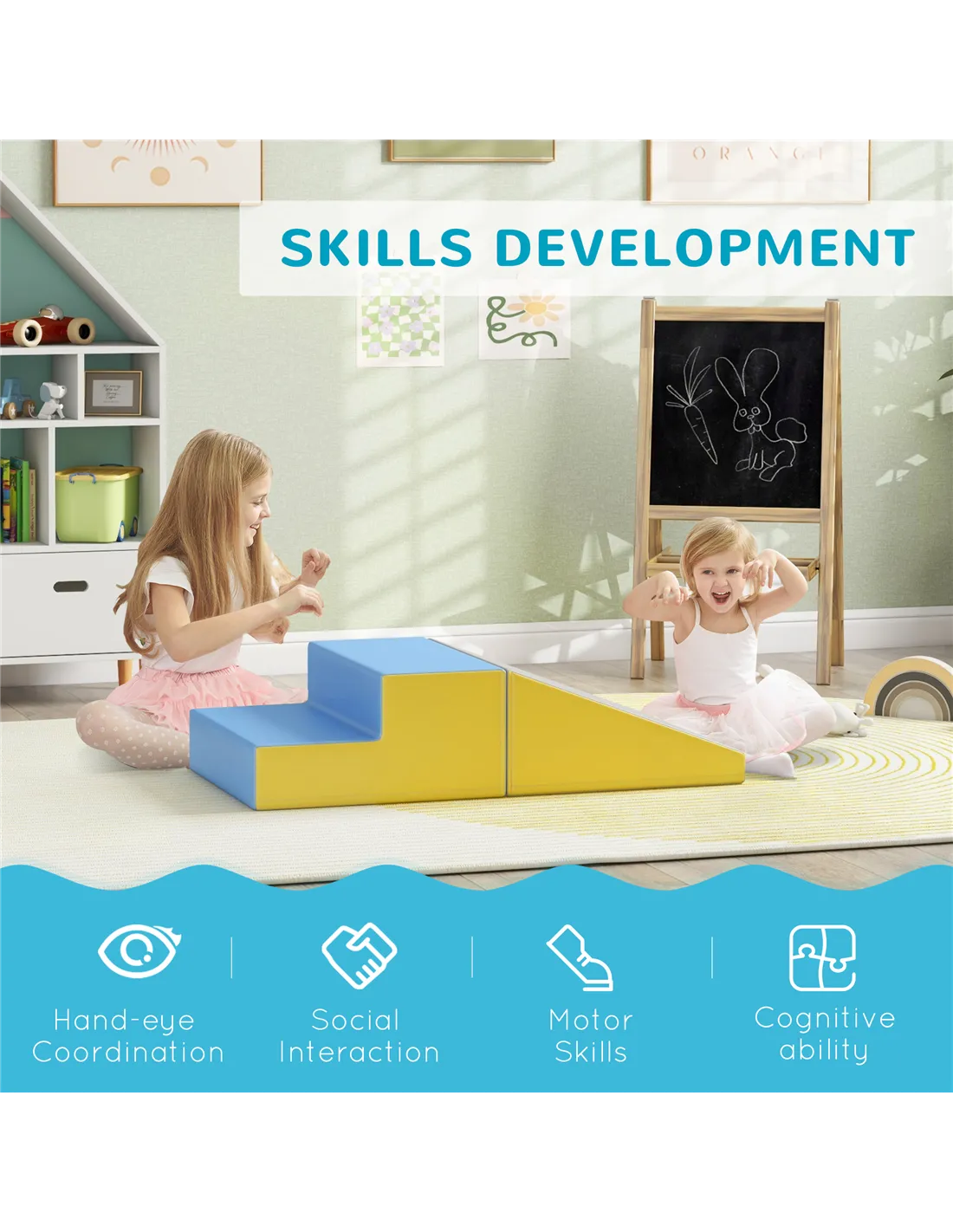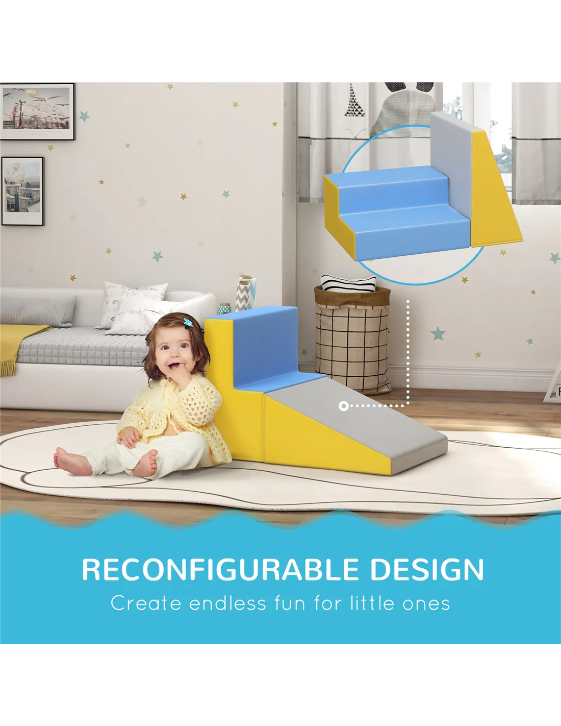 Transform any corner into an exciting play area with the HOMCOM kids playset. Featuring two soft blocks, you'll arrange them in various ways for climbing, crawling and sliding. Great for energetic kids to burn off energy, it also supports their cognitive and physical development as they navigate the obstacles. Crafted from smooth, child-friendly materials, it's safe and easy to clean, ensuring a hygienic play space. Watch your little explorers embark on adventures right in your living room!