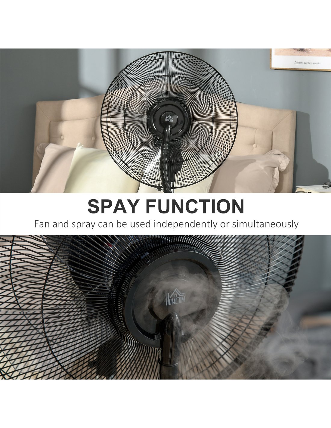 The HOMCOM 16" pedestal fan with water mist spray is an ideal addition to any British home seeking relief during warm weather. Perfect for living rooms, bedrooms, conservatories, or home offices, it provides a refreshing breeze combined with gentle humidification. Thanks to its adjustable mist levels and three fan speeds, it suits various needs—from a light natural airflow during work hours to a soothing sleep mode at night. The integrated electric mosquito killer jack ensures a comfortable, bug-free environment, making it especially useful for summer evenings on patios or near open windows. Its compact design with wheels allows easy relocation, so you can enjoy cool air wherever you need it most.