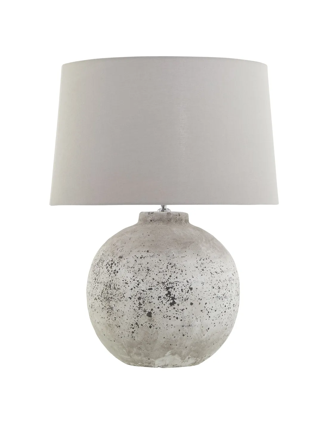 Introducing the Hill Interiors Tiber Large Stone Ceramic Lamp 23029, where rustic allure meets modern sophistication. This stunning lamp is a beacon of timeless design, promising an instant transformation to any living space. With its textured stone ceramic base, featuring a unique speckled finish, and a chic grey shade, this lamp is not just a source of light—it's an amazing statement piece.