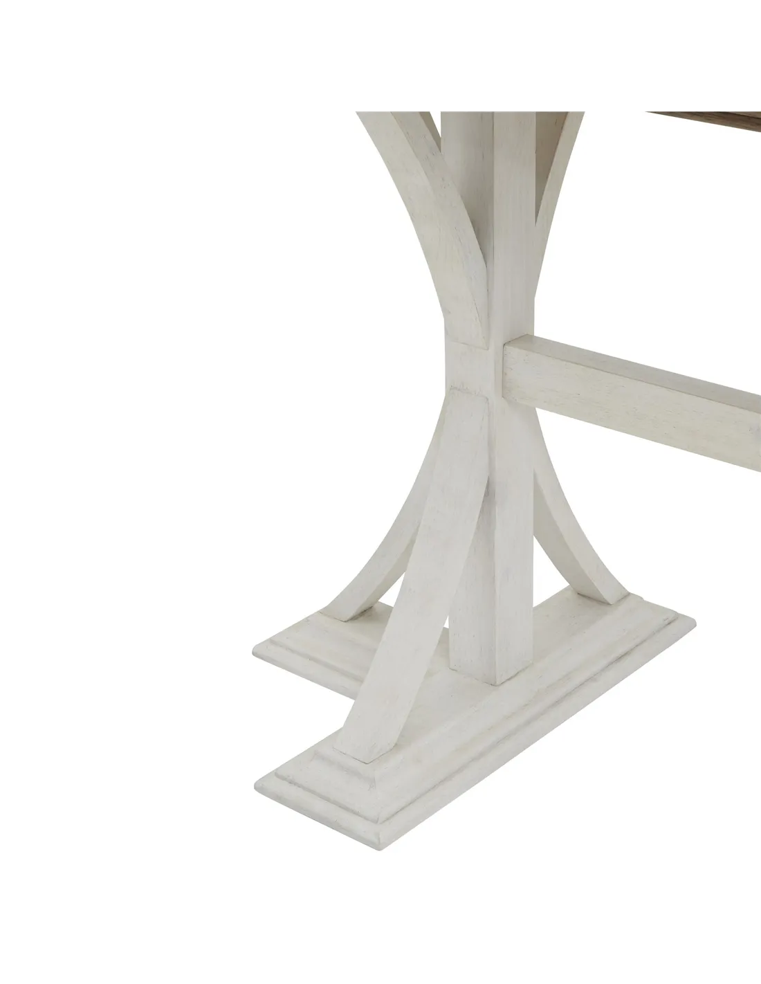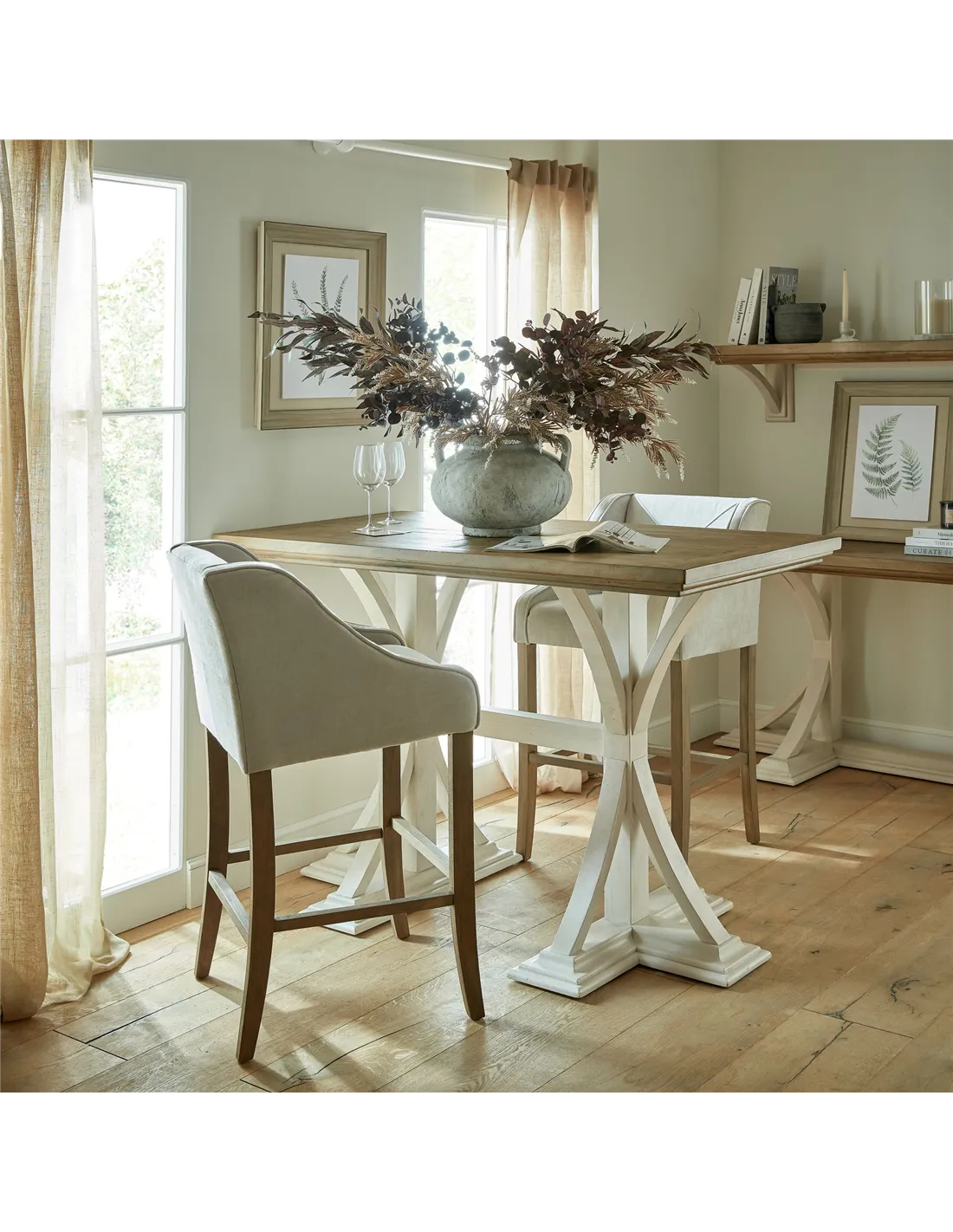 Crafted with precision by skilled artisans, the Luna Collection Rectangular Bar Table 23112 boasts a unique planked pine design, enhanced by a warm mid-tone stain. This exclusive design not only adds character but also ensures durability, making it a timeless addition to your home. The popular white painted legs provide a striking contrast to the wooden top, creating a versatile aesthetic that seamlessly blends into any interior décor.