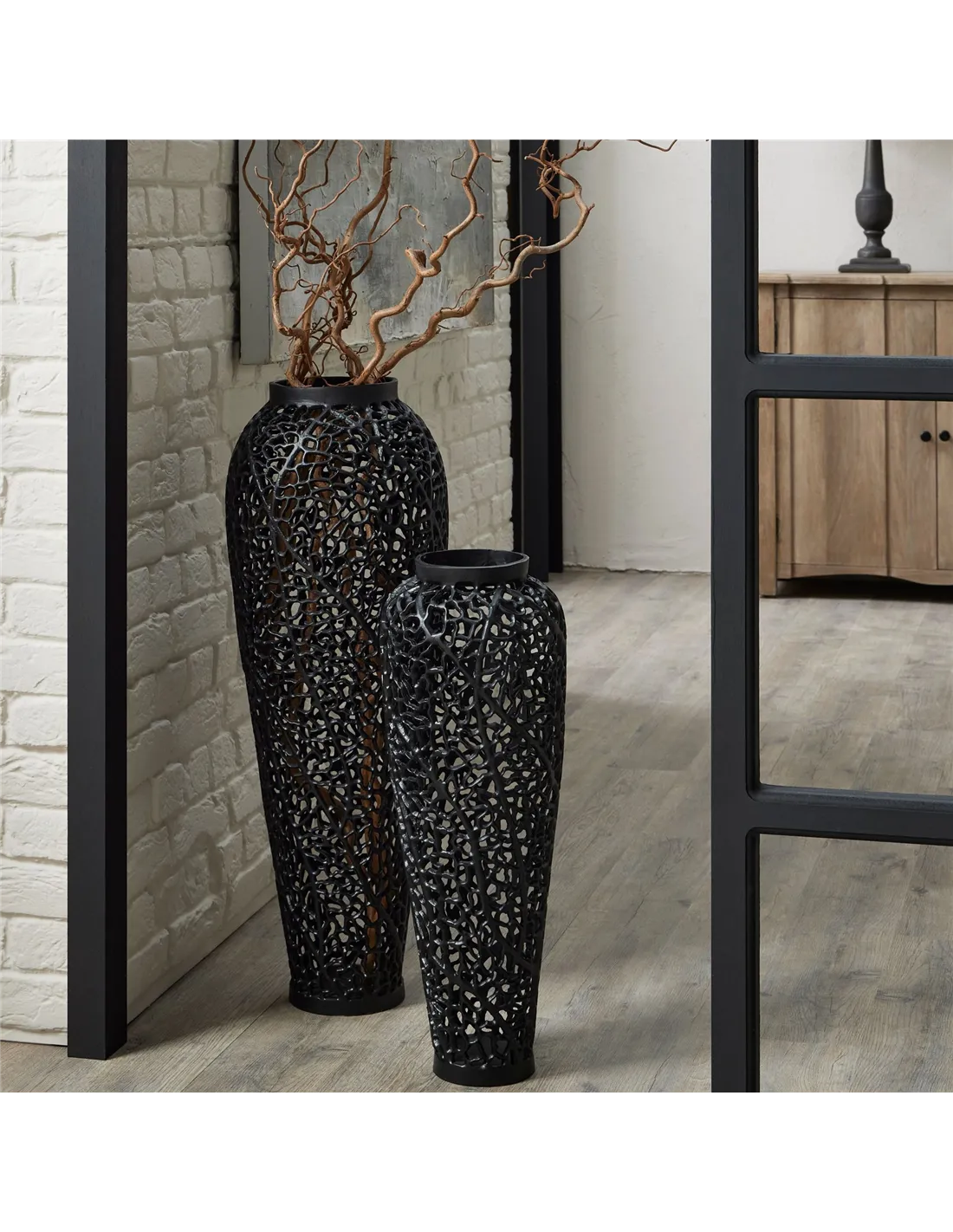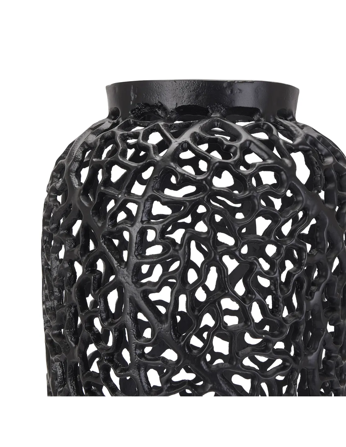 Discover the Amazing allure of the Hill Interiors Black Cast Lattice Large Vase 22875, where industrial elegance meets modern sophistication. This exquisite piece is crafted from durable aluminium, featuring a striking matte black finish that exudes timeless charm. The vase's intricate lattice design is not only a visual delight but also creates an Instant impact with its captivating shadow play, adding depth and texture to any room.