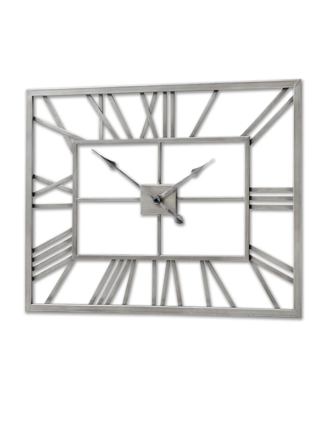 Hill Interiors Silver Rectangular Skeleton Wall Clock 17859