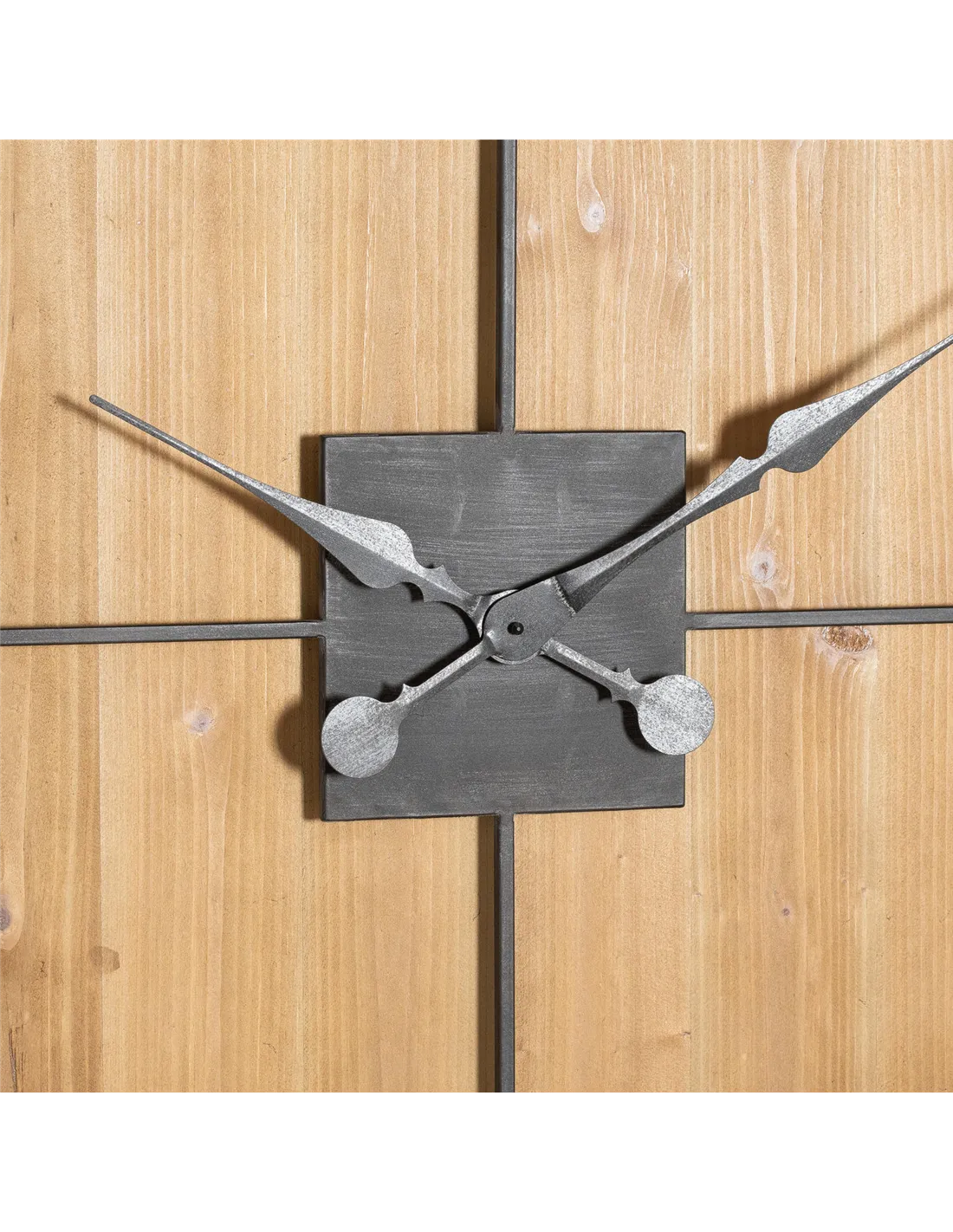 Introducing the Hill Interiors Williston Square Large Wooden Wall Clock 21644 – an exquisite blend of rustic allure and modern elegance. This stunning timepiece is not just a clock; it's a statement piece that transforms any room into a sophisticated haven. With its artfully layered grey metal Roman numerals set against a natural wooden backdrop, this clock offers a captivating interplay of materials and textures that is sure to mesmerise.