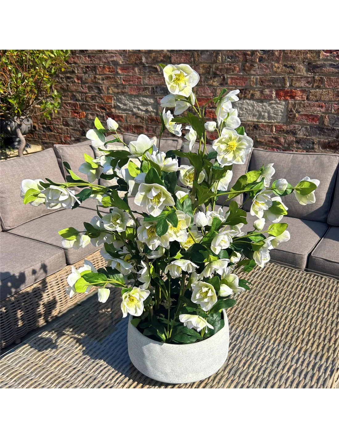 - Is the Hill Interiors Large White Hellebore in Grey Pot suitable for outdoor use?