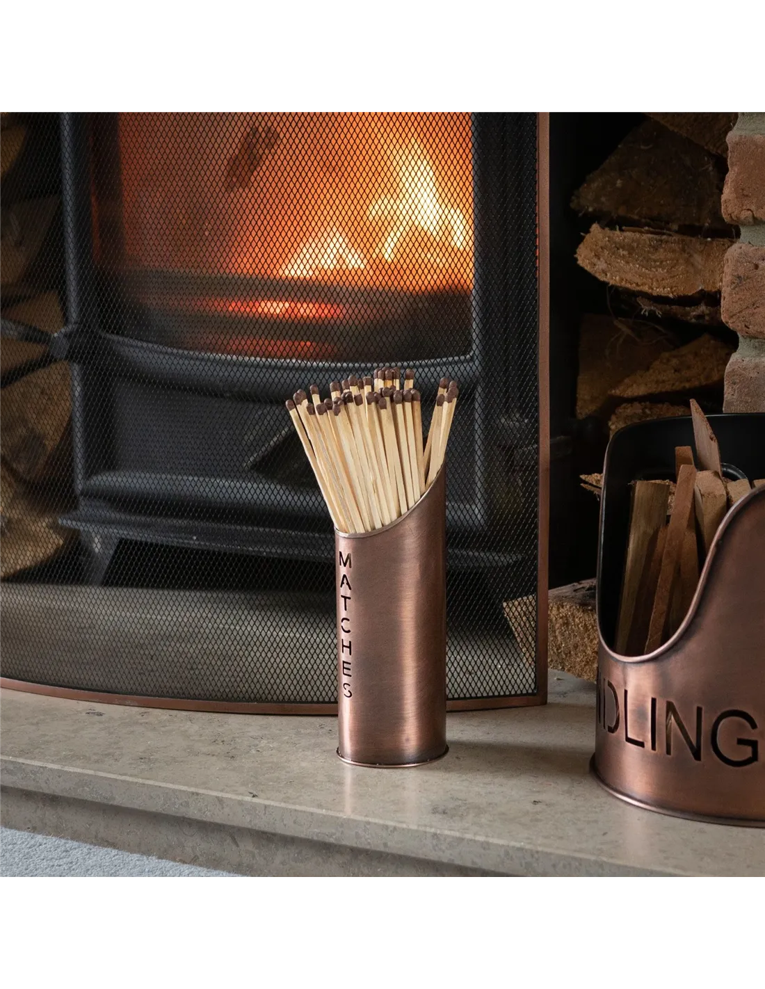 Place the copper buckets near your wood-burning stove or open fire to add a warm, rustic charm while keeping your logs dry and accessible. The matchstick holder keeps your fire-starting essentials tidy and safe, reducing clutter and improving convenience. According to customer feedback, this set also serves as an attractive feature on hearths or mantelpieces, blending practicality with style.