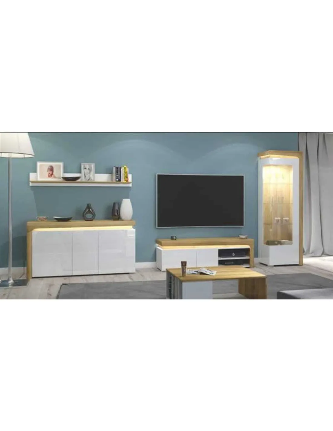 FAQ: Cadillac Oak Effect and White Gloss Display Cabinet with LED Lights