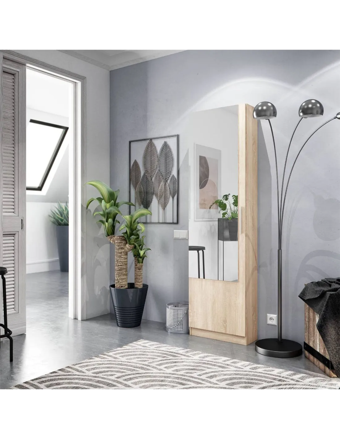 - Thanks to its compact dimensions (H 180cm W 50cm D 22cm) and sleek oak effect finish, this cabinet fits perfectly in hallways, bedrooms, or dressing areas. The mirrored door not only adds a stylish accent but also serves a practical purpose, making it ideal for smaller spaces where a full-length mirror is useful.