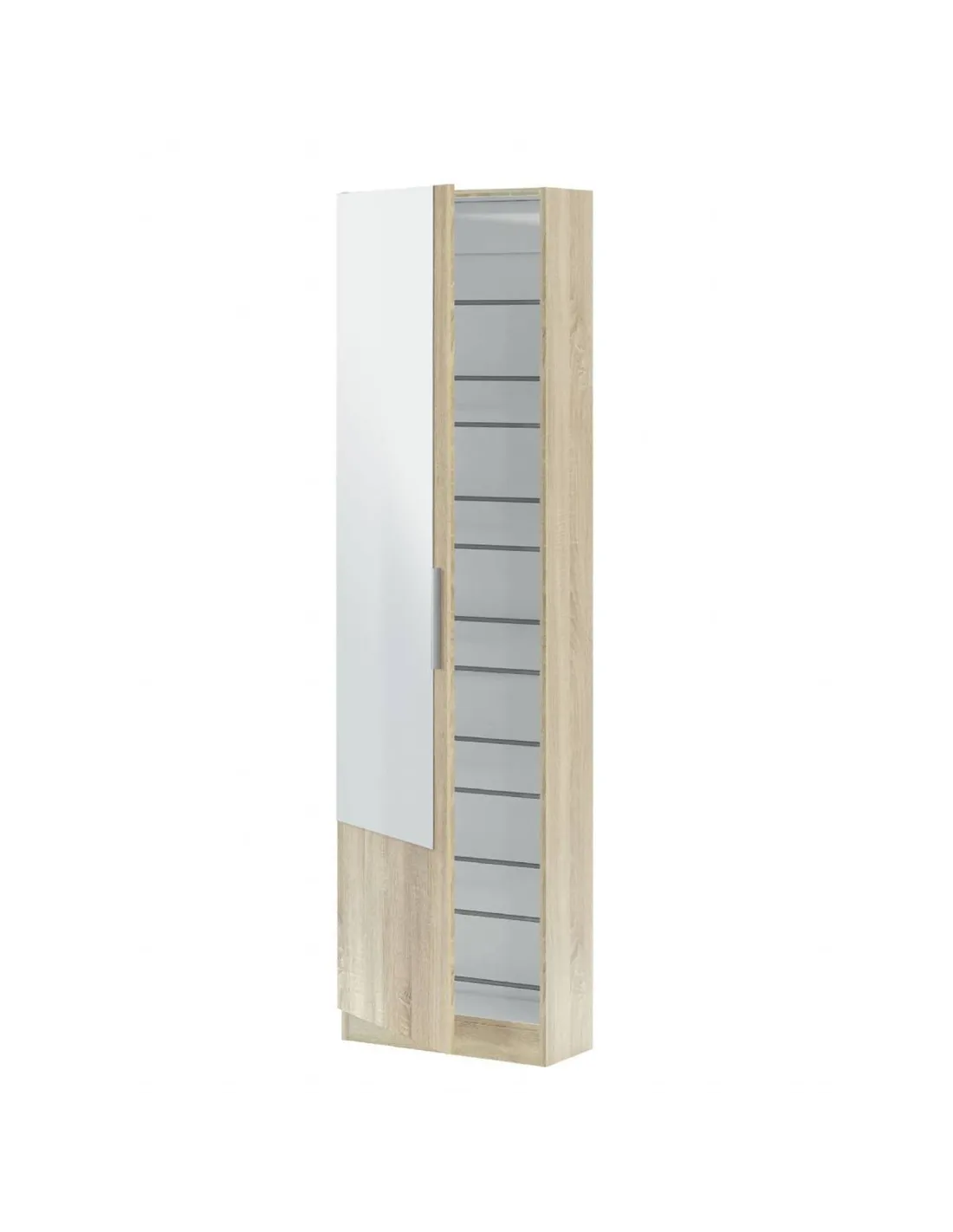 Transform your home with this exclusive shoe cabinet, designed to blend elegance with practicality. The oak effect finish adds a touch of sophistication, while the mirrored door offers instant style and functionality. With the capacity to hold up to 14-16 pairs of shoes, this cabinet ensures your footwear is always organised and accessible. Its compact dimensions (H 180cm W 50cm D 22cm) make it a perfect fit for any space.