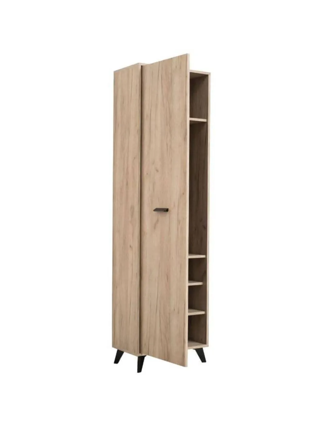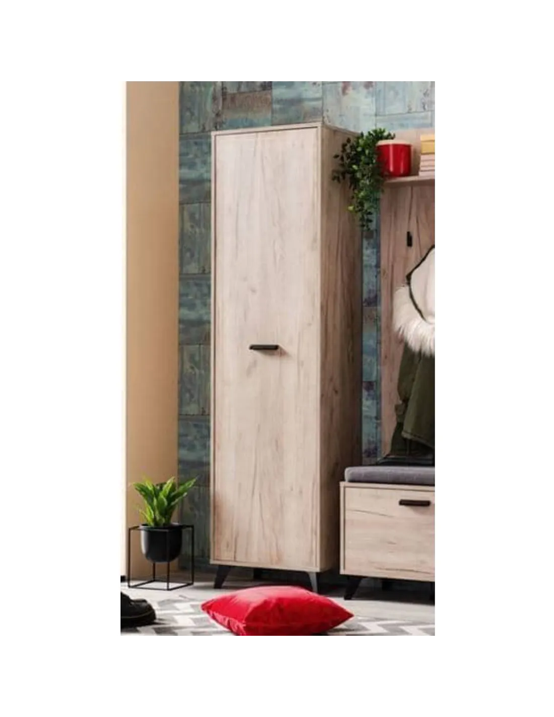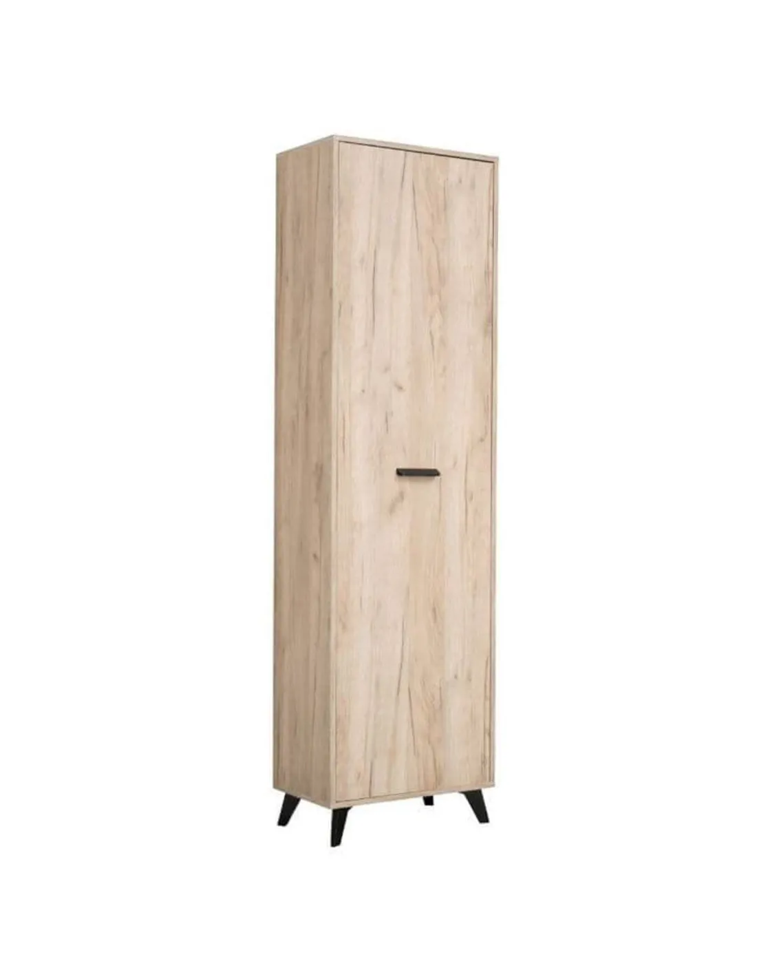 - The Kenzo Oak Slim Wardrobe is perfect for optimising bedroom or hallway storage where space is limited. Its slim profile and efficient internal layout make it suitable for organising clothing, accessories, or even seasonal items. Thanks to its elegant grey oak finish and black accents, it complements contemporary interiors while providing practical storage solutions.