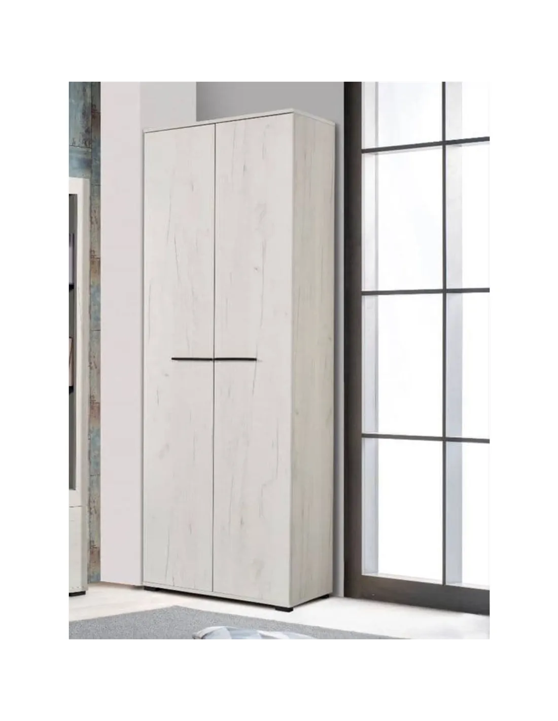 - Featuring two doors, the wardrobe offers ample room for organising clothing, shoes, and accessories efficiently. Its thoughtful design helps keep your living space tidy while maintaining an elegant appearance.