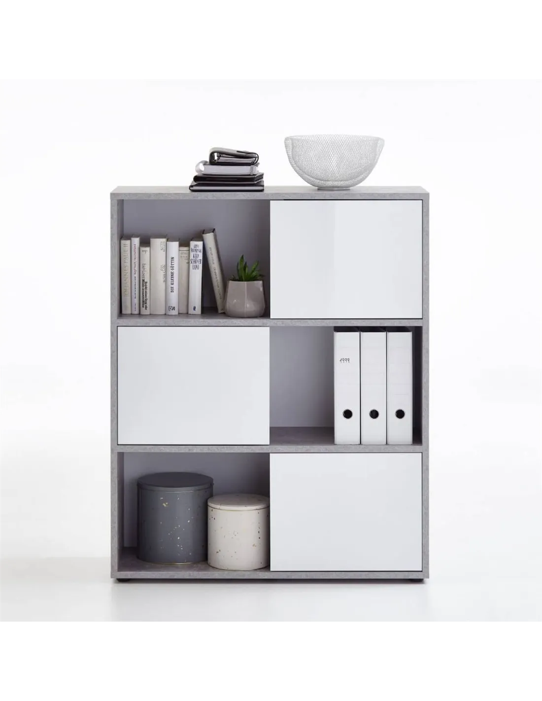 Transform your living space with this stunning bookcase, offering an exclusive blend of style and functionality. The Luiz Short Bookcase in grey and white is an instant classic, perfect for any room in your home. Its sleek design features three doors and three open compartments, providing versatile storage for books, decor, and essentials. The modern concrete grey and white finish adds a contemporary touch, ensuring your belongings are both organised and easily accessible.