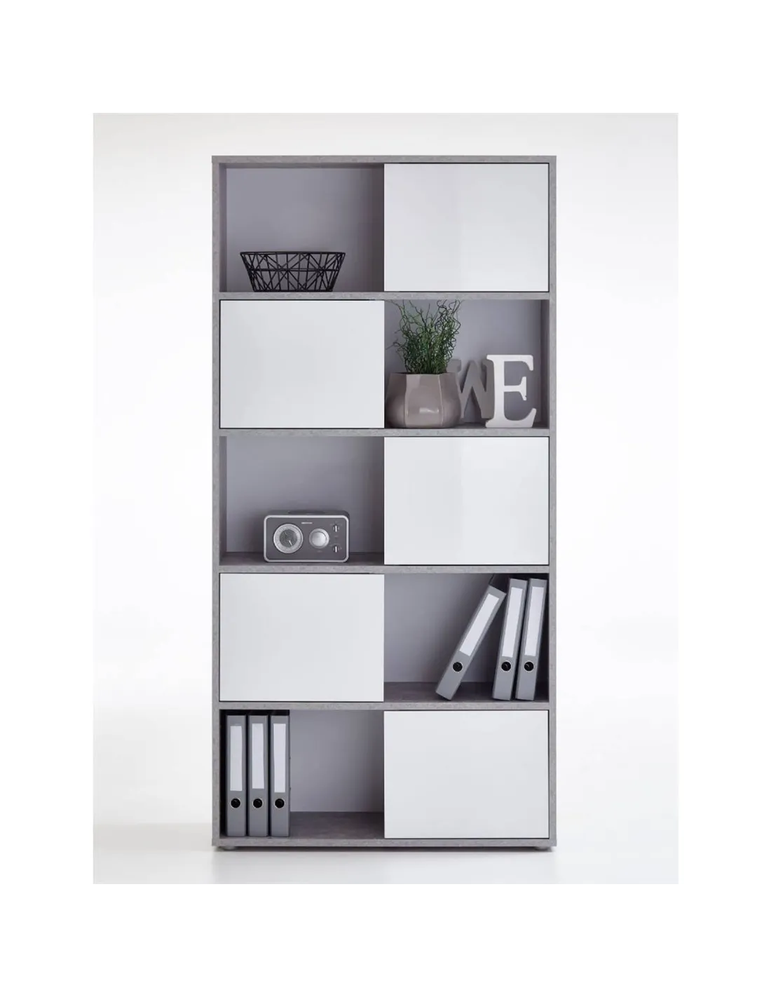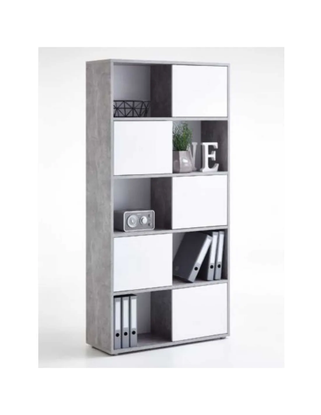 Transform your living space with the amazing Luiz Tall Bookcase in grey and white. This exclusive piece offers an instant upgrade to any room, combining modern aesthetics with practical storage solutions. Its sleek design features four open compartments and four versatile doors, allowing you to customise the layout to suit your needs. Perfect for organising books, displaying decor, or storing essentials, this bookcase is a must-have for any home.