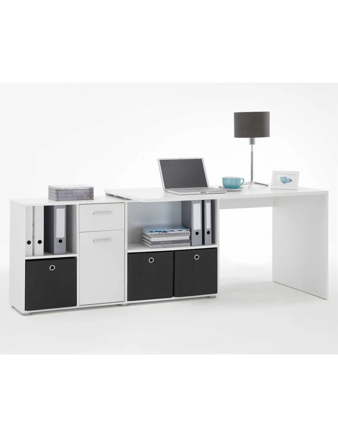- With its sleek alpine white finish and adaptable design, this desk complements modern, minimalist, or traditional interiors. It can serve as a compact workstation in smaller rooms or a spacious desk in larger offices, enhancing organisation and productivity.