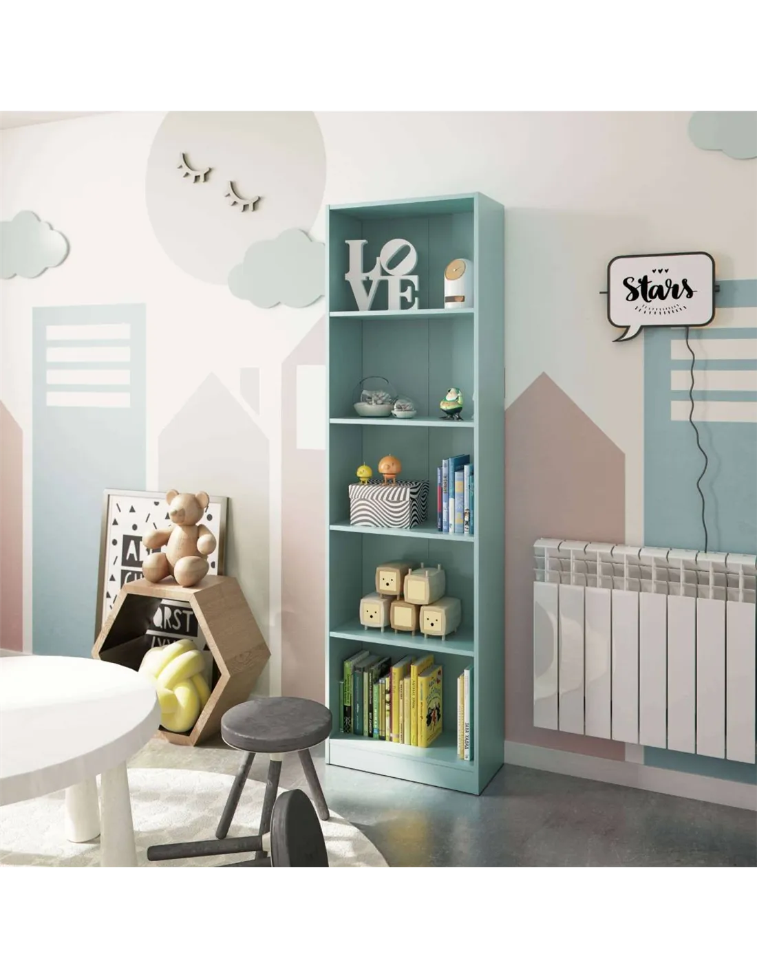 Transform your living space with this stunning tall bookcase, designed to bring both elegance and practicality to your home. The refreshing aqua green finish adds an exclusive touch, making it a perfect fit for any room. With five spacious shelving compartments, you can instantly organise and display your favourite books and decorative pieces.