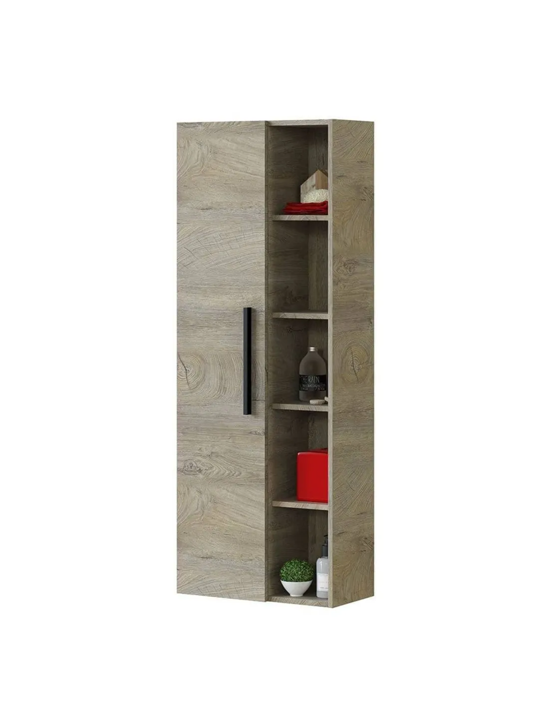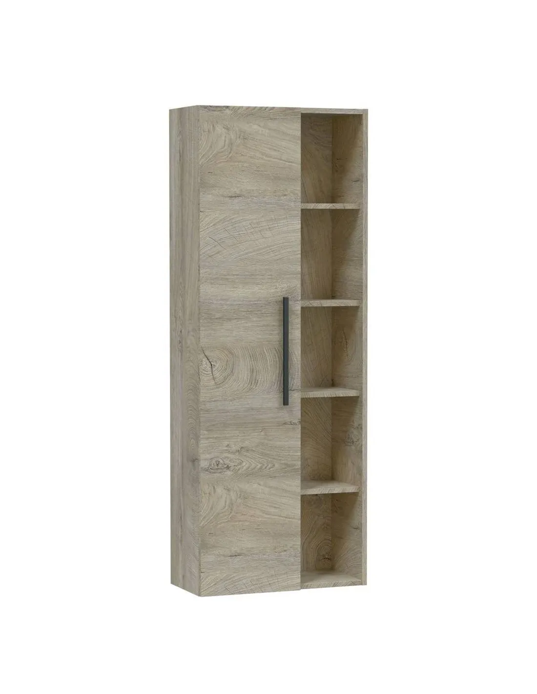 Discover the amazing blend of style and practicality with this oak effect wall-mounted cupboard. Perfect for any bathroom, its floating design saves space while adding a modern touch. With one door and five open compartments, it offers instant organisation for all your essentials. This exclusive piece is not only elegant but also incredibly affordable, making it a must-have for savvy homeowners.