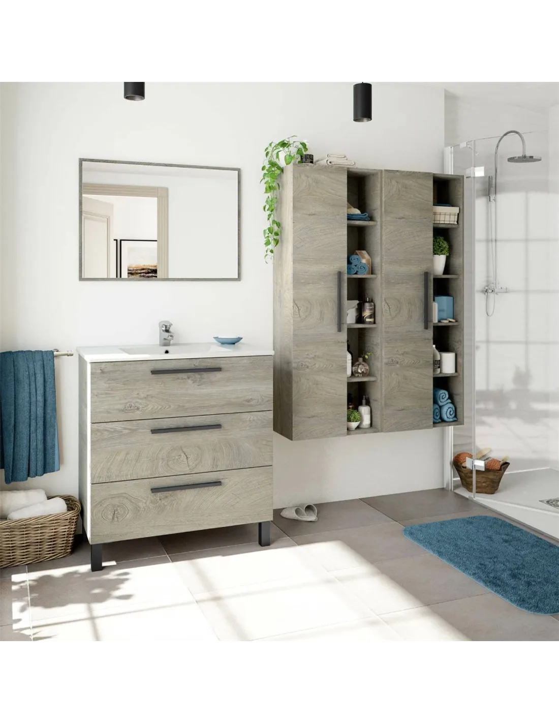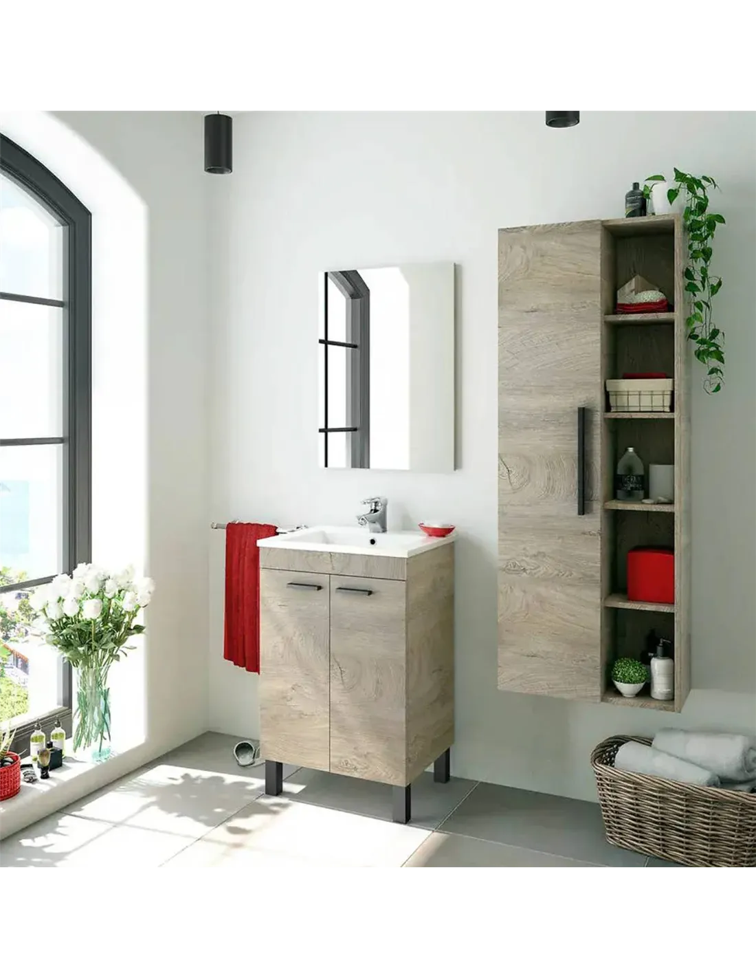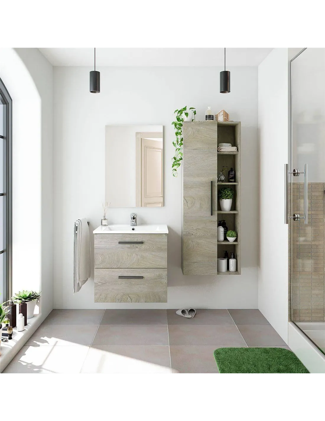 - This versatile storage unit is perfect for organising bathroom essentials such as toiletries, towels, and cosmetics. Its wall-mounted design helps to free up floor space, making it suitable for both compact and spacious bathrooms. Additionally, the oak effect finish complements a variety of interior styles, from contemporary to rustic, enhancing the overall aesthetic of your home.