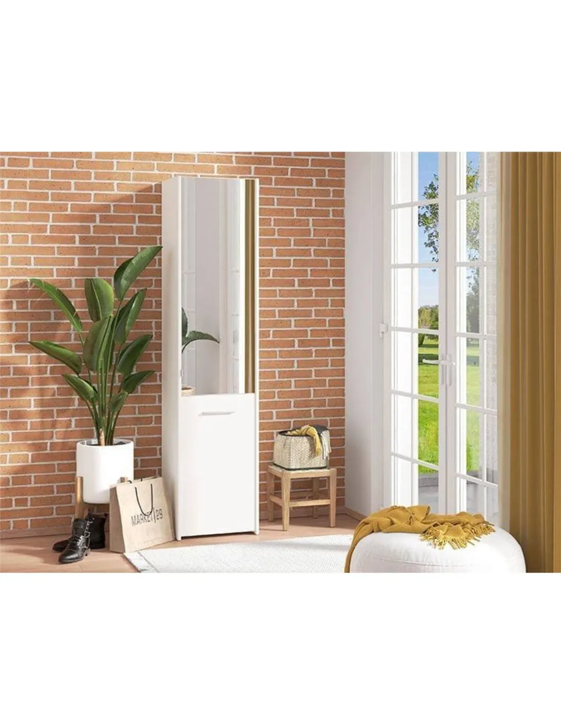 - Thanks to its minimalist design and neutral colour, this cupboard complements modern and traditional décor alike. The mirrored door not only adds a touch of sophistication but also visually enlarges smaller entryways, making it ideal for flats, cottages, or city homes.