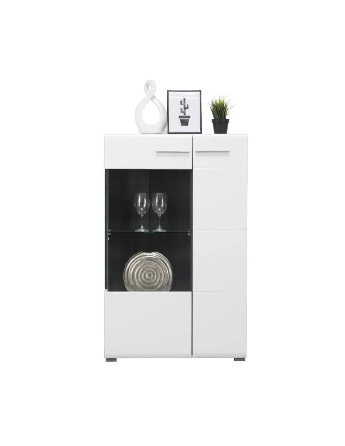 - Based on buyer feedback, the cabinet is praised for its striking contrast of gloss white and matte finishes, sturdy build, and the way it highlights displayed items beautifully. Many appreciate its versatility and value for money.