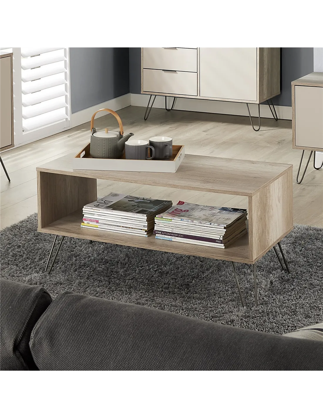 The open undershelf offers ample storage space, allowing you to keep your living area tidy and organised. Whether it's magazines, remote controls, or decorative items, everything finds its place effortlessly. The flat-packed design ensures easy assembly, so you can enjoy your new coffee table in no time.