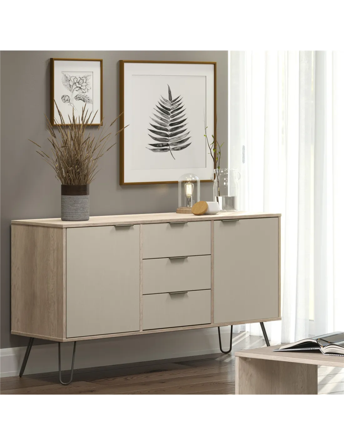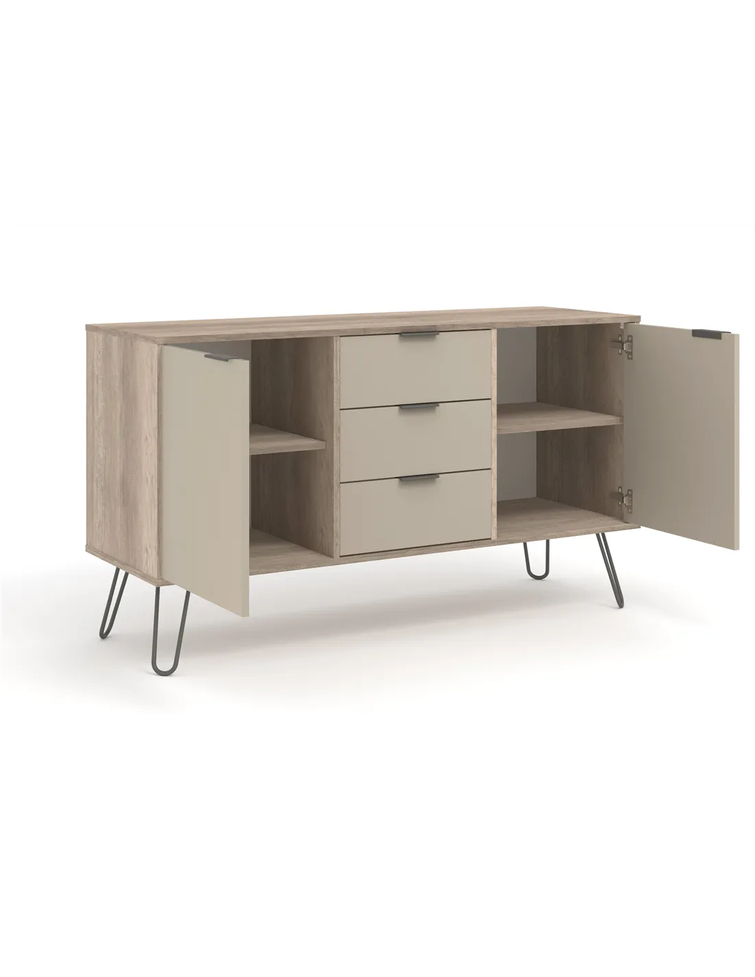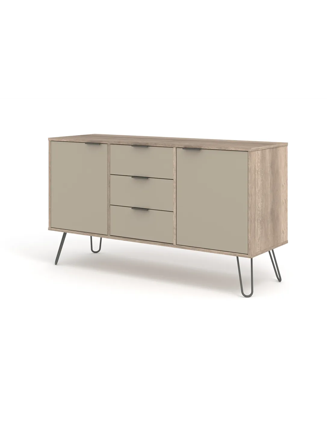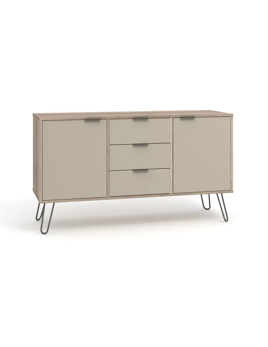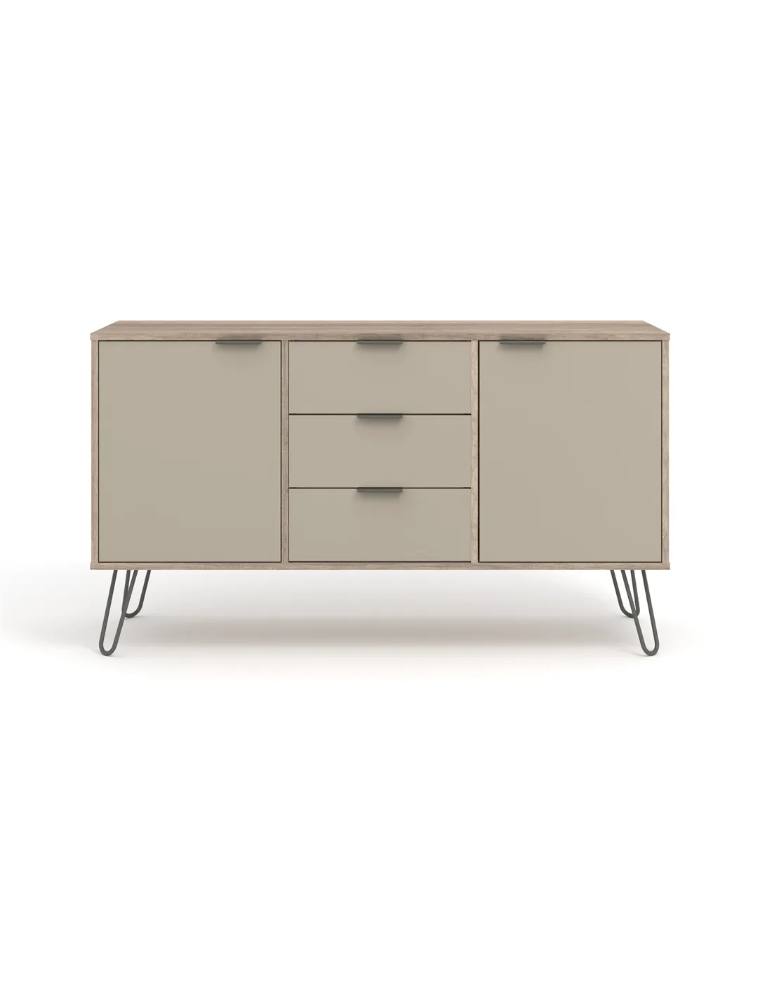 Experience the perfect blend of style and practicality with the Core Products Augusta Driftwood Medium Sideboard. Its spacious design offers ample storage with three drawers and two doors, making it ideal for organising your essentials. The industrial style, highlighted by real metal legs and a textured finish, adds a touch of modern elegance to any room. Crafted with care, this sideboard is not only visually appealing but also built to last, thanks to its hardwearing materials.