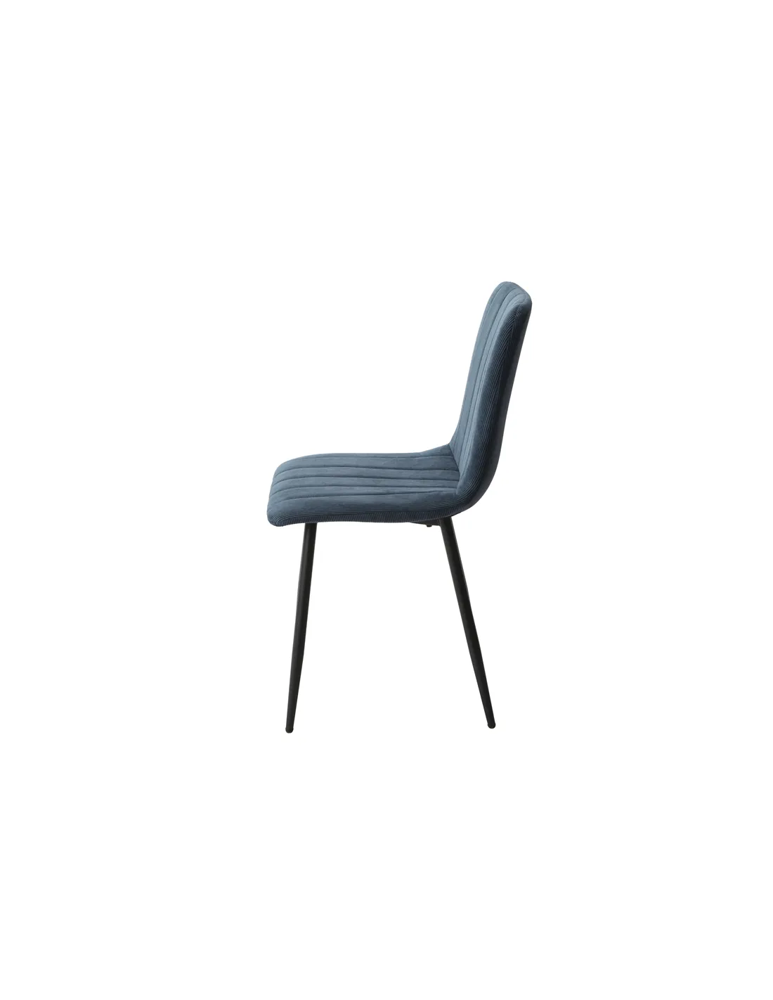 Introducing the Core Products Aspen straight stitch blue cord dining chair, black tapered legs (pair), ASCH16-BCF – a perfect blend of elegance and practicality. These compact dining chairs are designed to offer both comfort and style, making them an ideal choice for any dining space where room is at a premium. Upholstered in a luxurious soft blue cord-style fabric, these chairs feature a padded straight-stitched design that adds a touch of sophistication to your dining area.