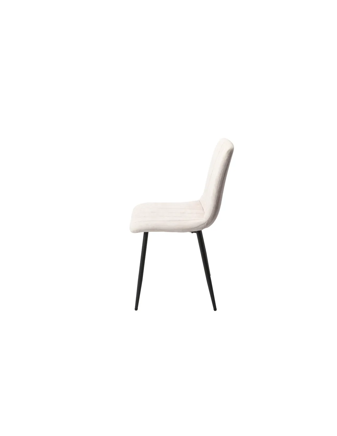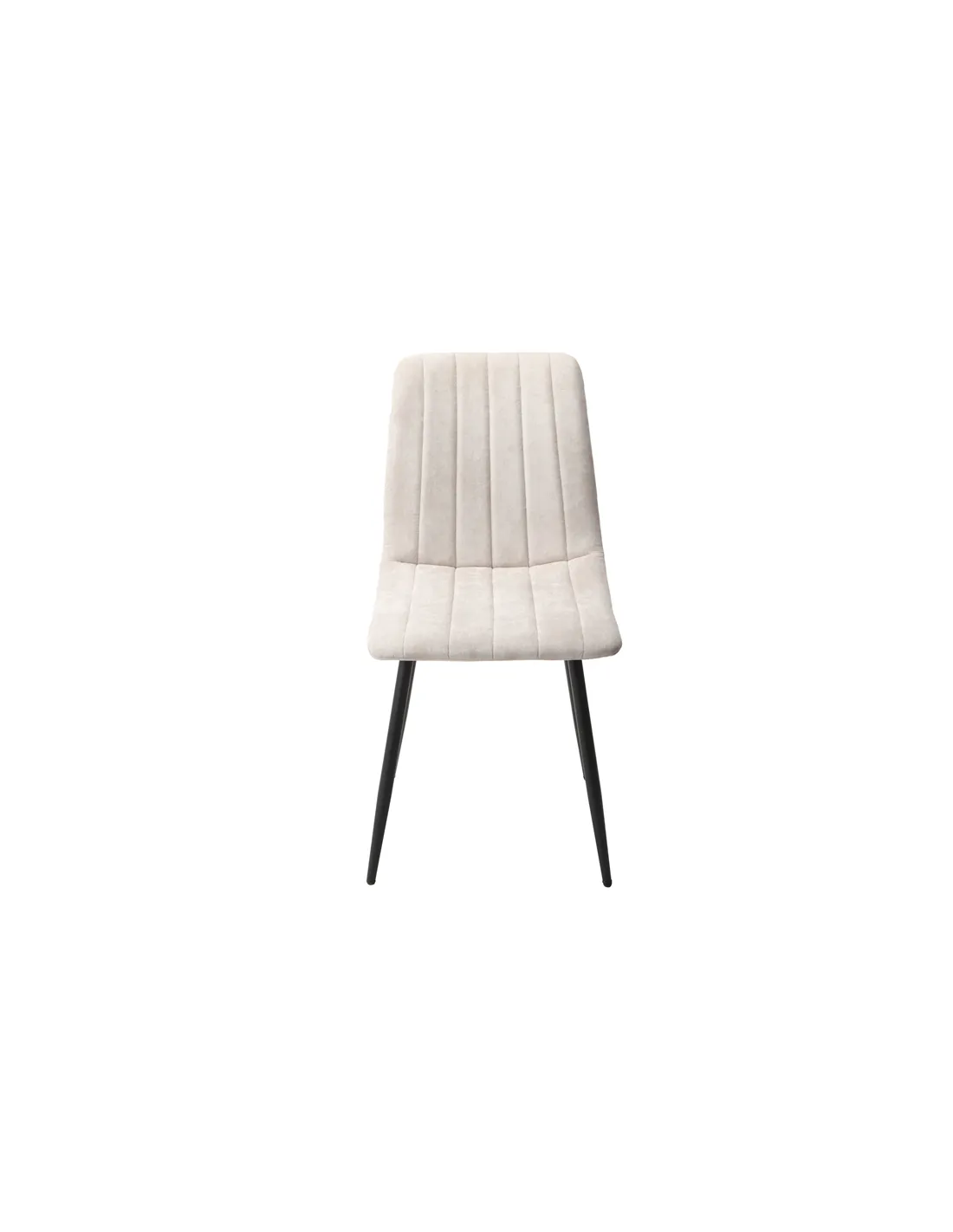 These amazing dining chairs are not just about looks; they are designed with your comfort in mind. The soft foam padding and plastic injection moulded interior ensure a comfortable seating experience, making every meal a pleasure. The natural coloured fabric upholstery adds a touch of warmth and elegance, perfectly complementing the black tapered metal legs for a striking contrast.