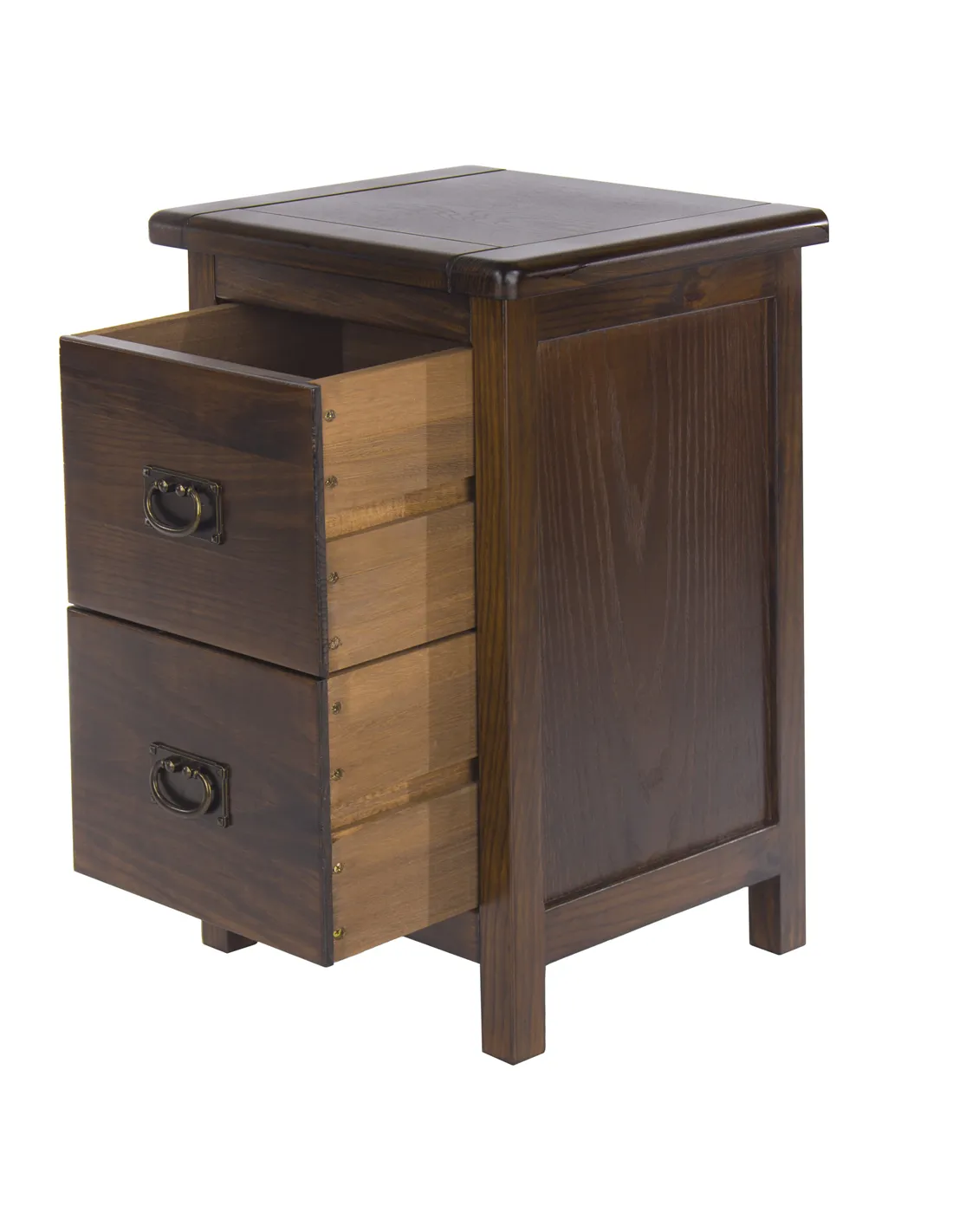 Introducing the Core Products Boston 2 Drawer Petite Bedside Cabinet, BT209 – a stunning blend of craftsmanship and style that brings a touch of colonial elegance to your bedroom. This exquisite piece is meticulously handcrafted, combining various woods with a rich dark lacquer finish and adorned with real metal handles, making it a perfect addition to any home.