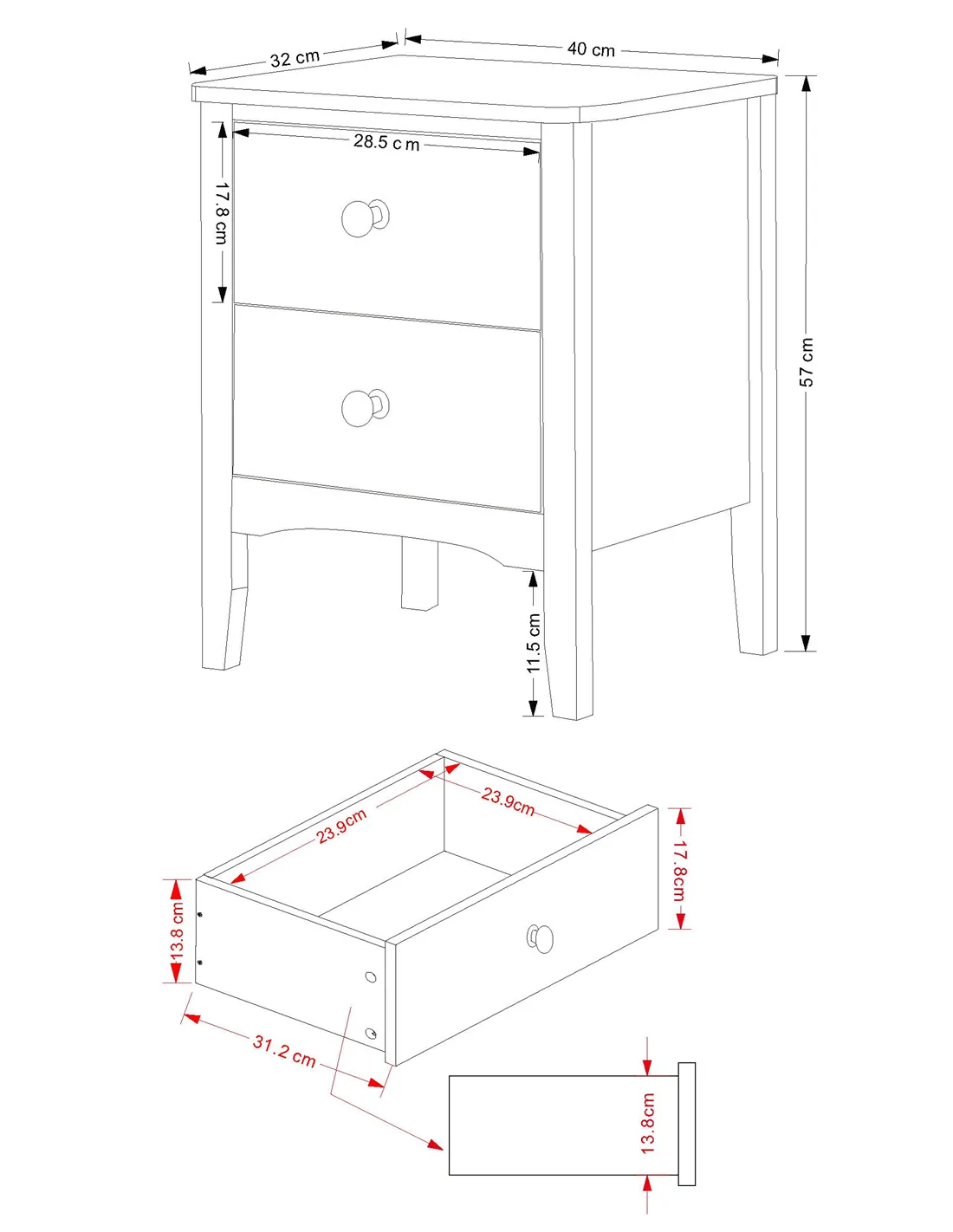 - Assembled Height: 57.0cm