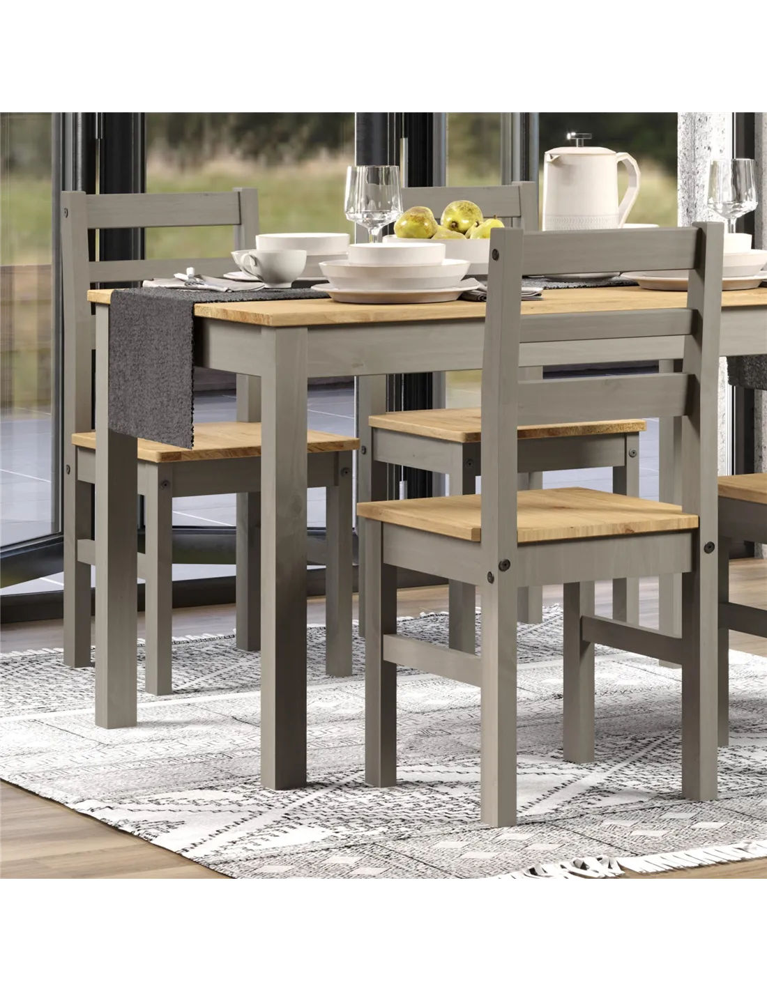 With their elegant ladder back design, these chairs are a timeless addition to any dining room. The grey and antique wax finish adds a touch of sophistication, while the solid pine construction guarantees durability. Perfect for both modern and traditional settings, they are a versatile choice for any home.