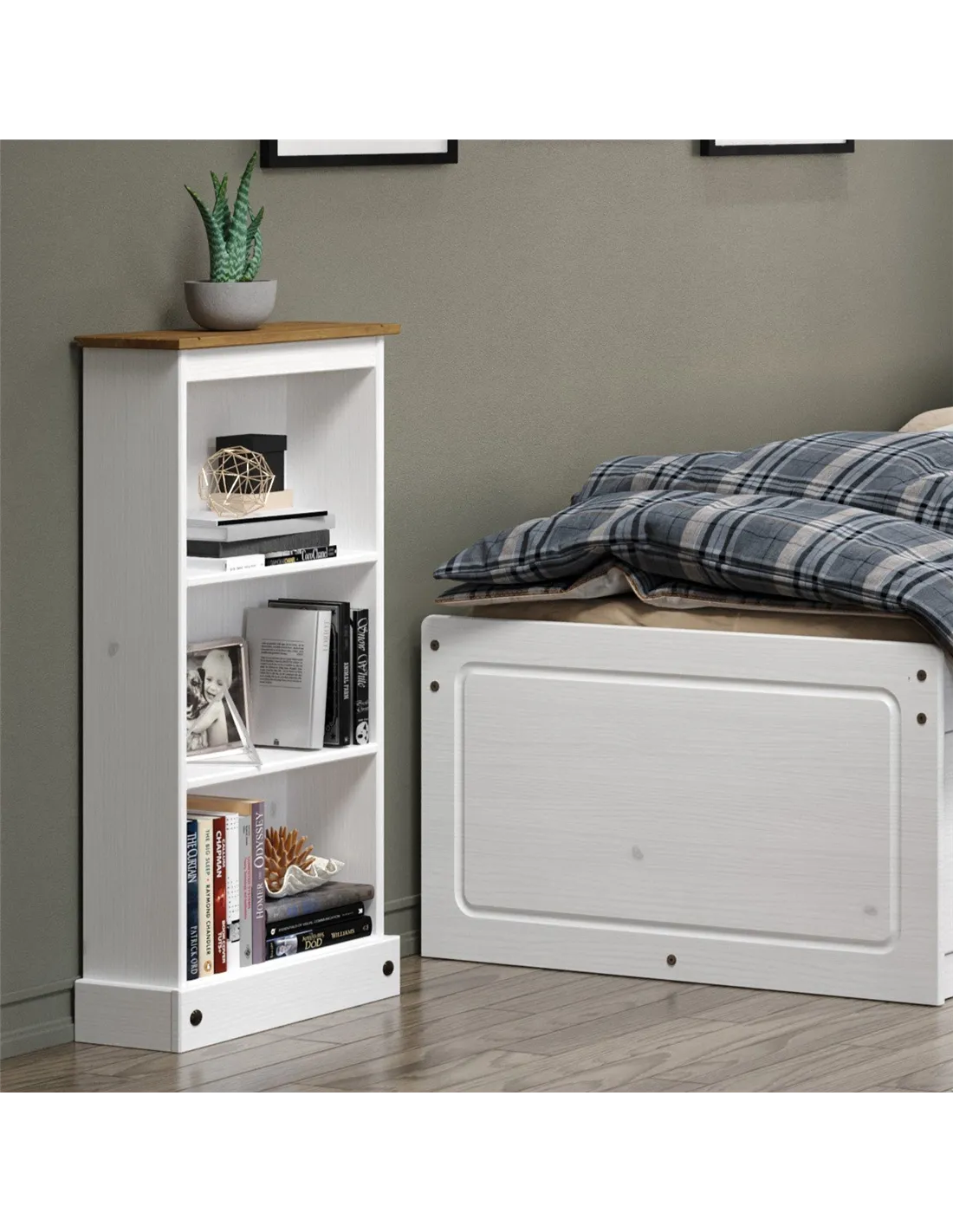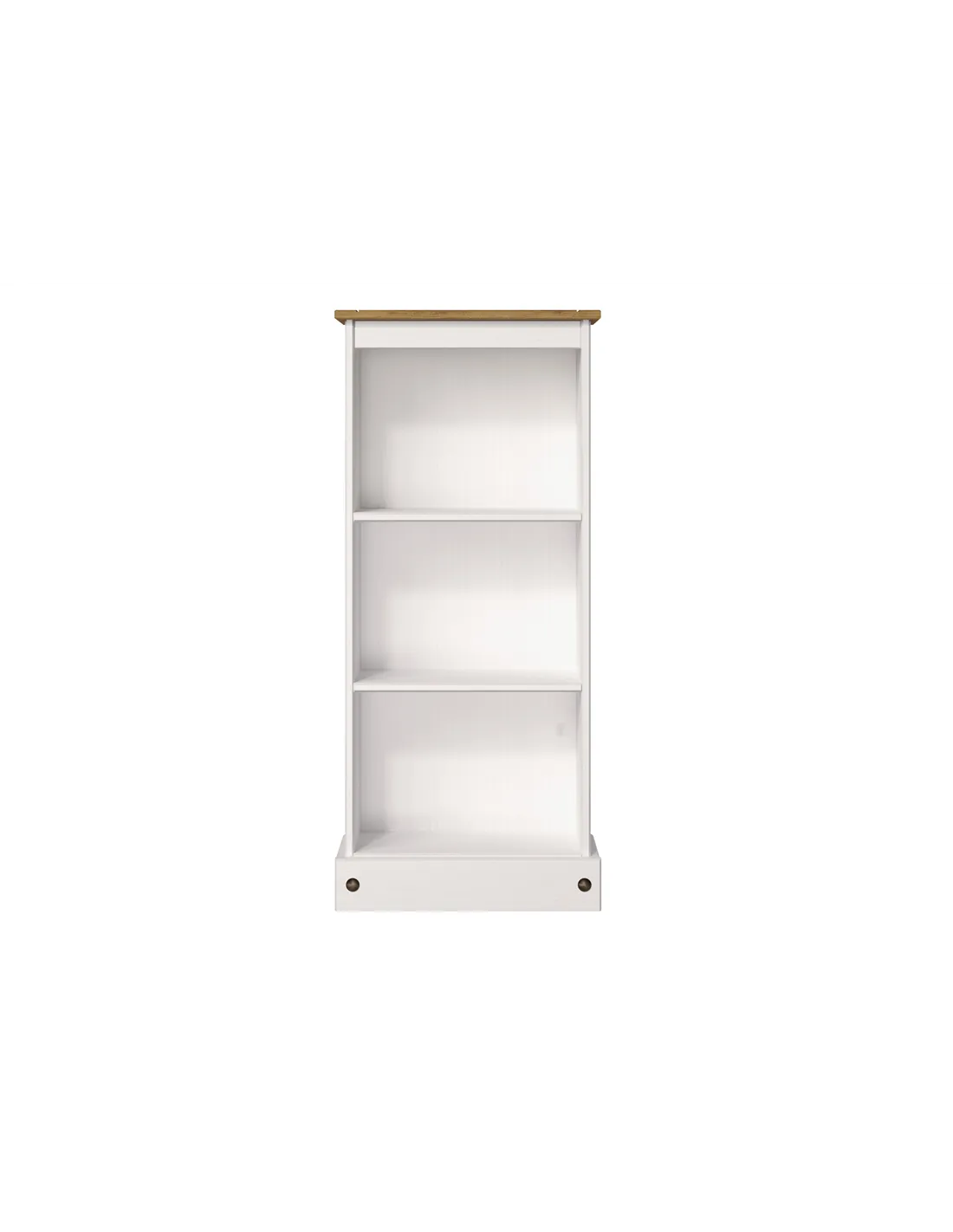 Transform your living space with the Core Products Corona White Low Narrow Bookcase, CRW748. Perfect for those short on space, this elegant piece combines functionality with style, offering a practical solution for your storage needs. Crafted from real pine, it boasts a stunning white wash wax finish complemented by an antique wax top, embodying a classic Mexican design that adds a touch of rustic charm to any room.