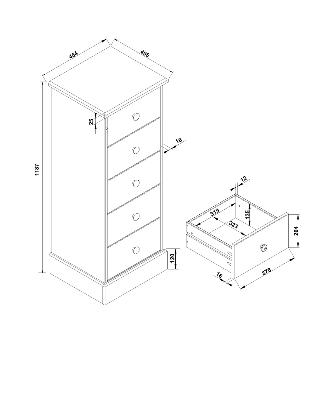 - Drawers sides & back thickness: 12mm