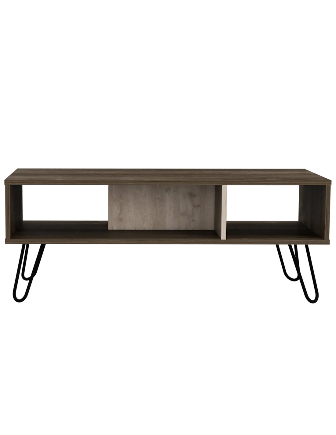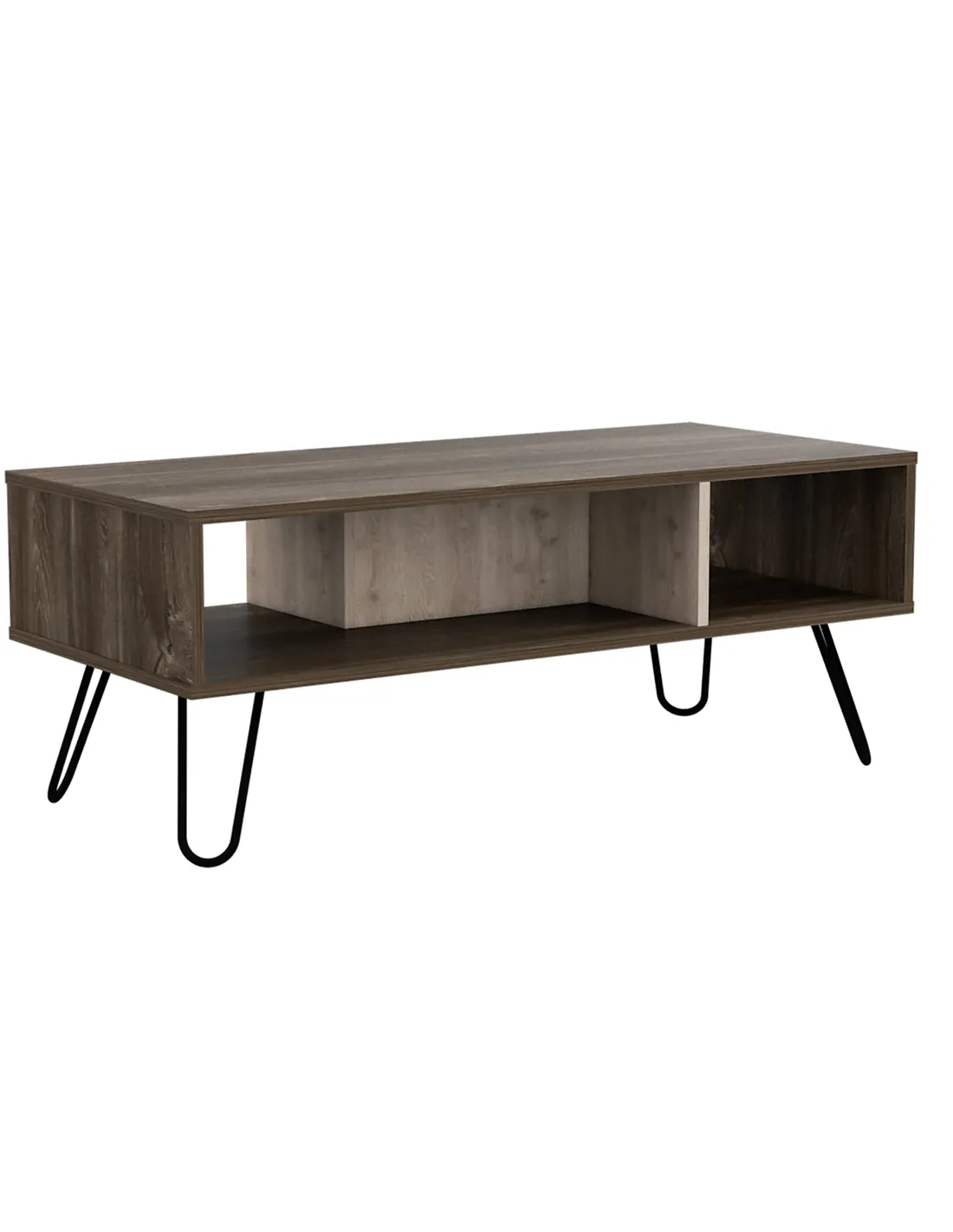 Introducing the Core Products Nevada Coffee Table, NE902 – a stunning blend of style and functionality that will instantly elevate your living space. This exquisite coffee table combines a bleached oak effect with a contrasting matt grey finish, all supported by sleek black metal hairpin legs. It's not just a table; it's a statement piece that offers ample storage space beneath its elegant tabletop.