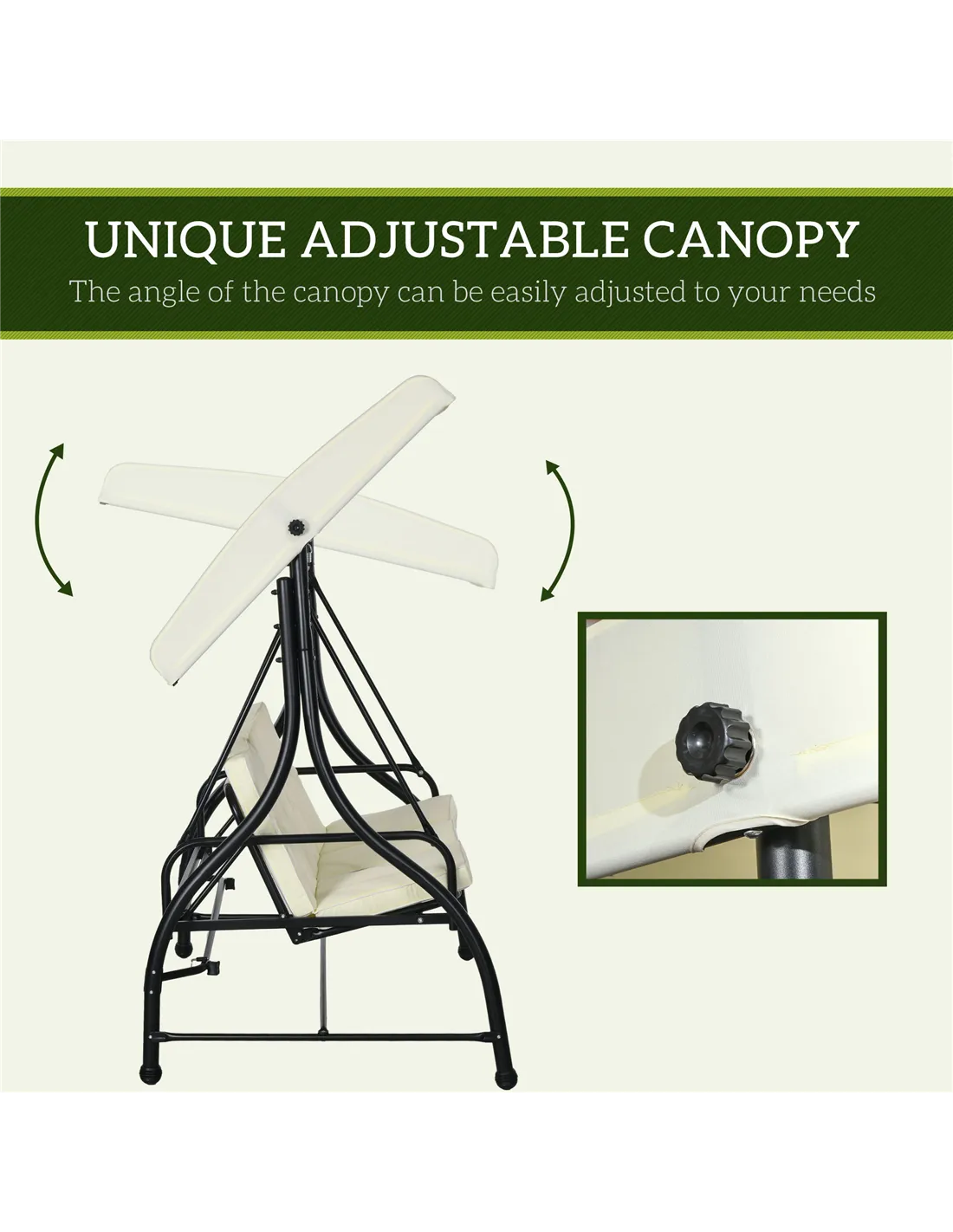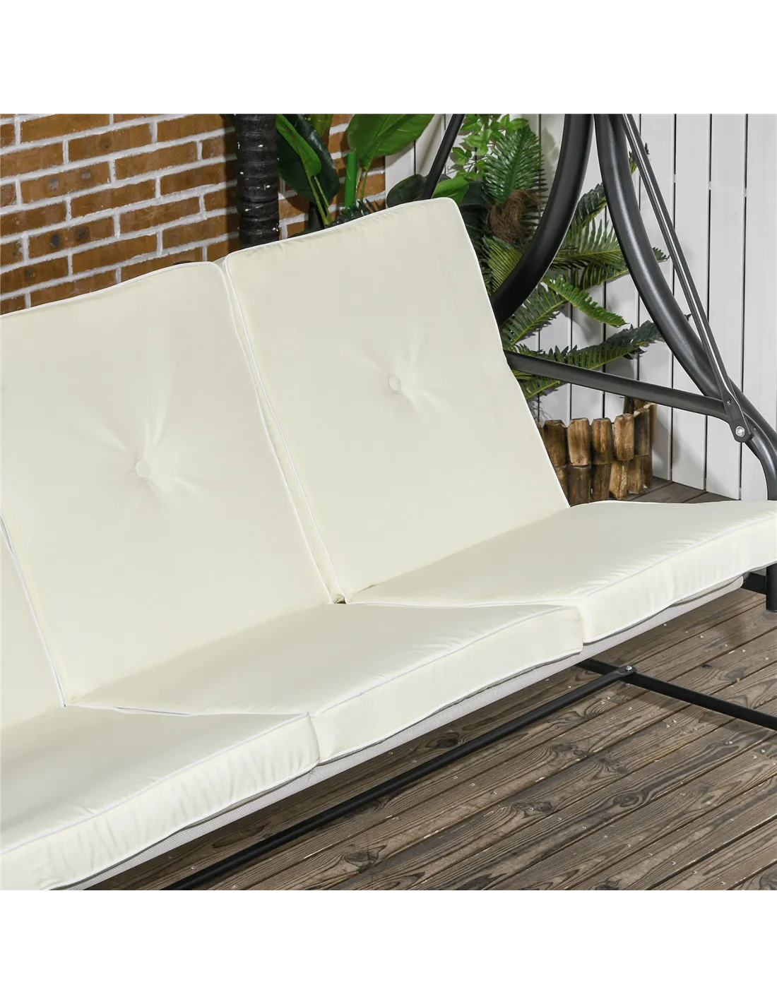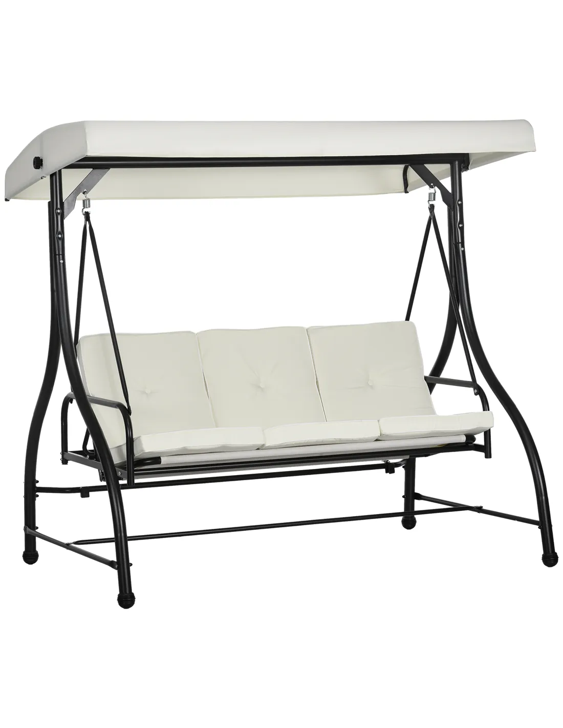 Outsunny 3 Seater Canopy Swing Chair, 2 in 1 Garden Swing Seat Bed, with Adjustable Canopy and Metal Frame, Cream White