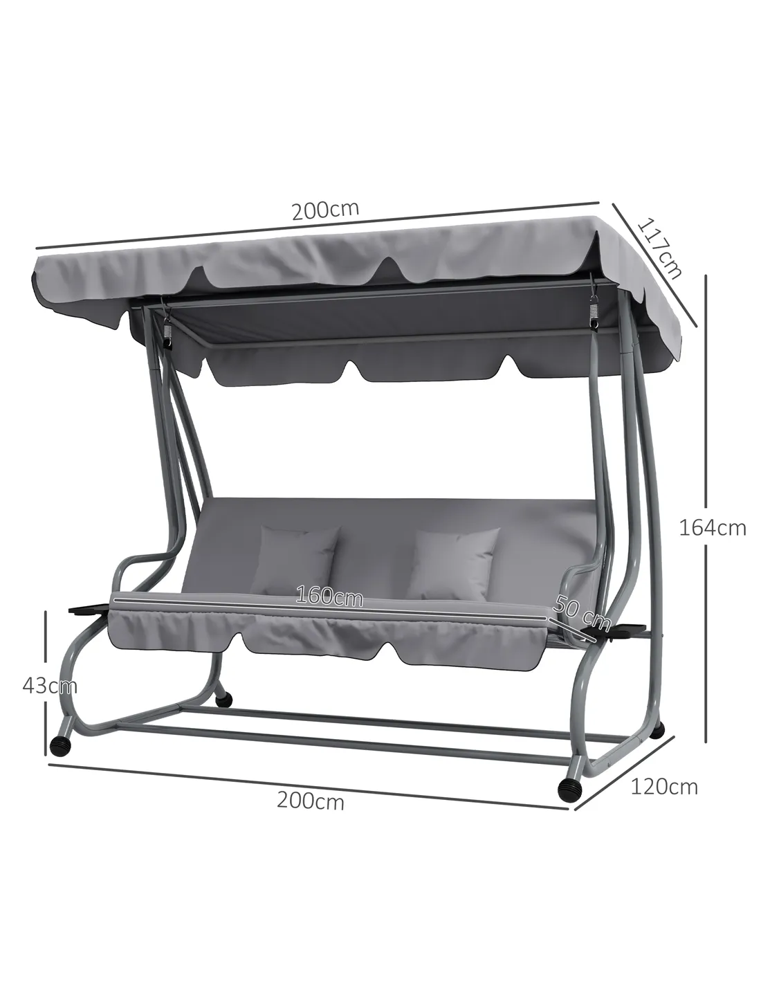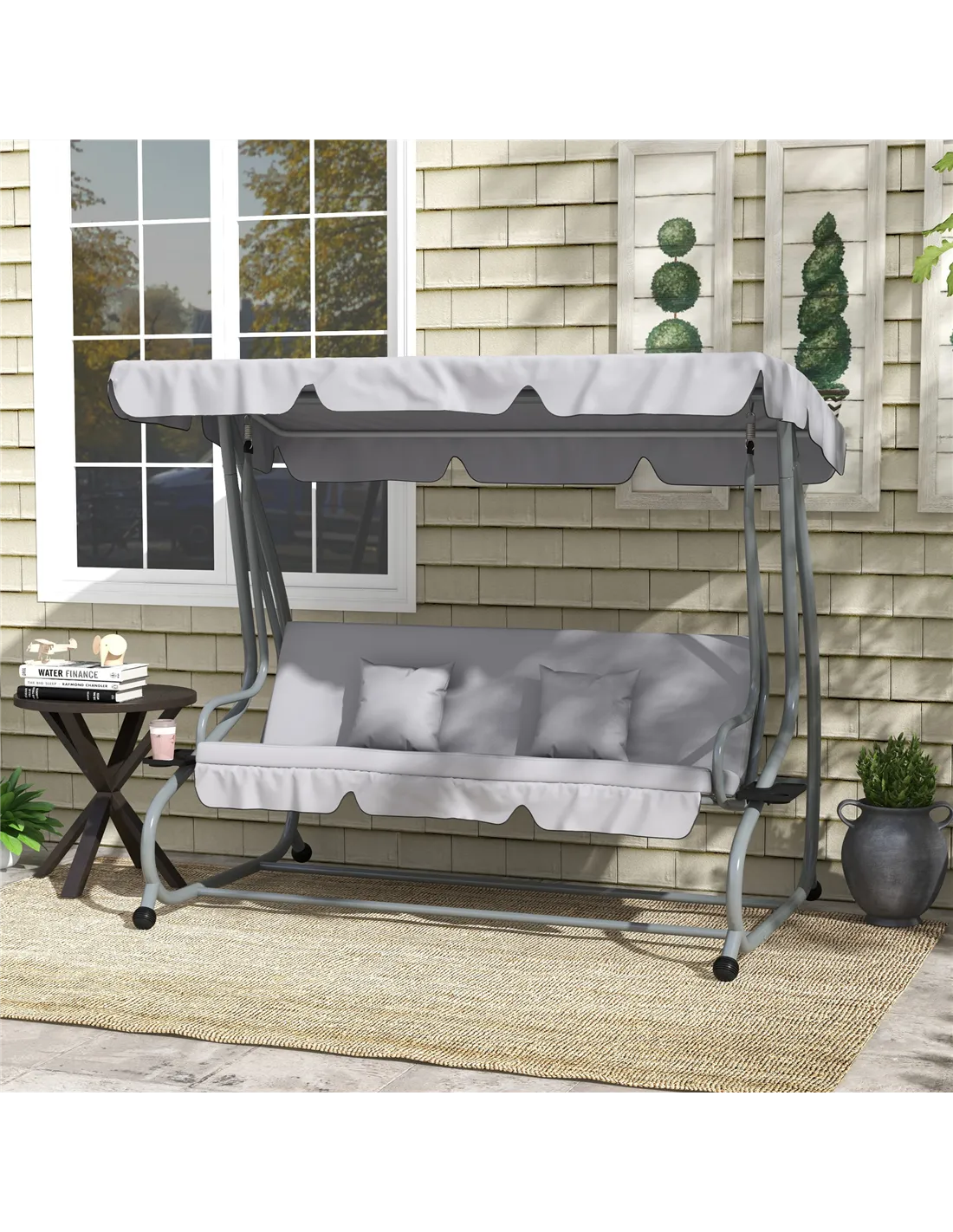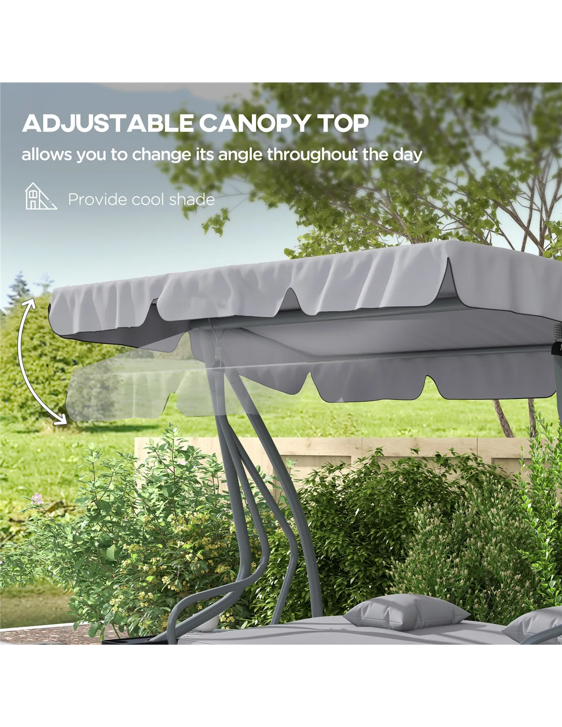 Outsunny Three-Person garden Swing Chair, with Adjustable Canopy - Light Grey