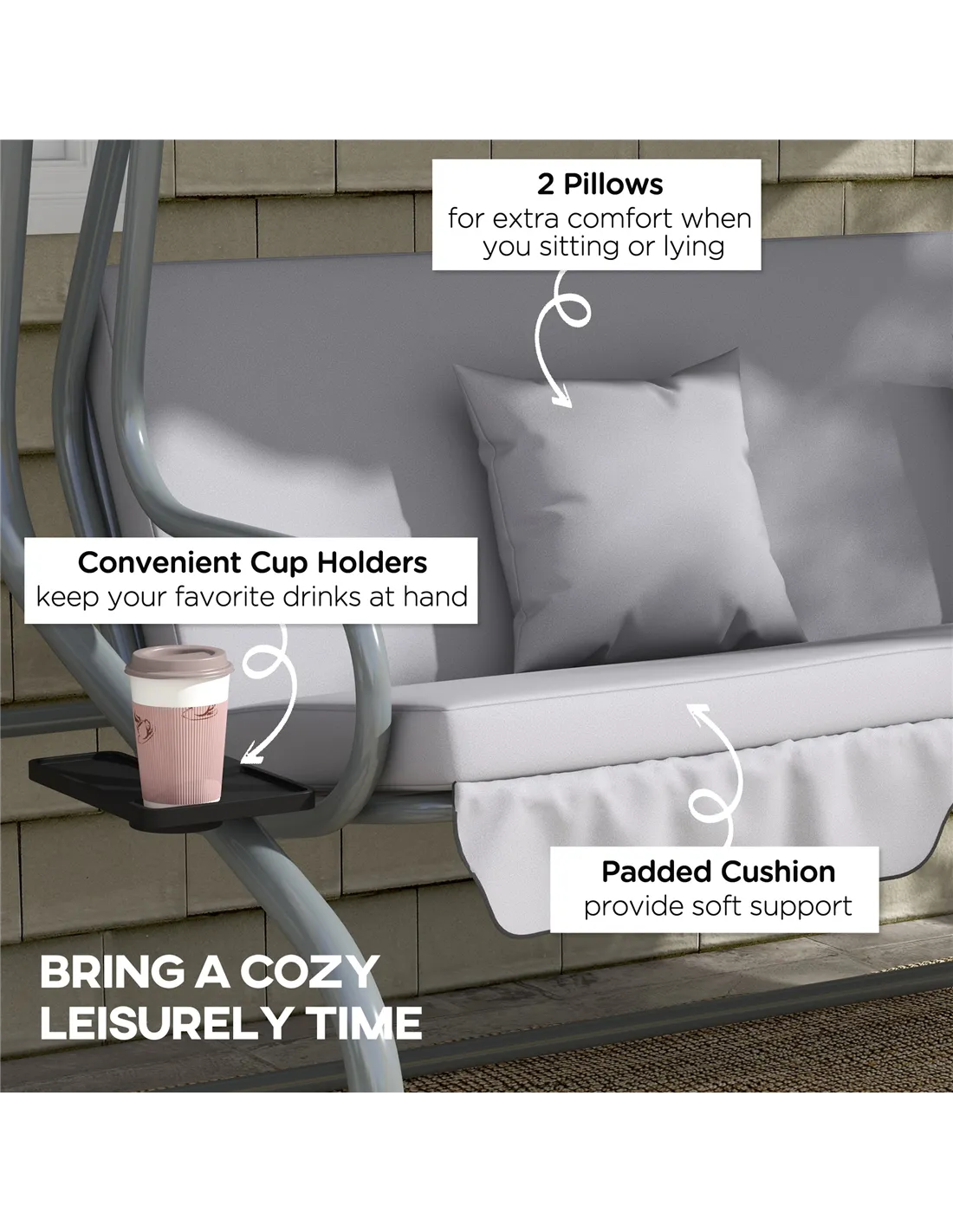 - Ideal for family use or entertaining guests, the cushioned seat and included pillows ensure comfort for extended periods, whether chatting, napping, or simply unwinding.