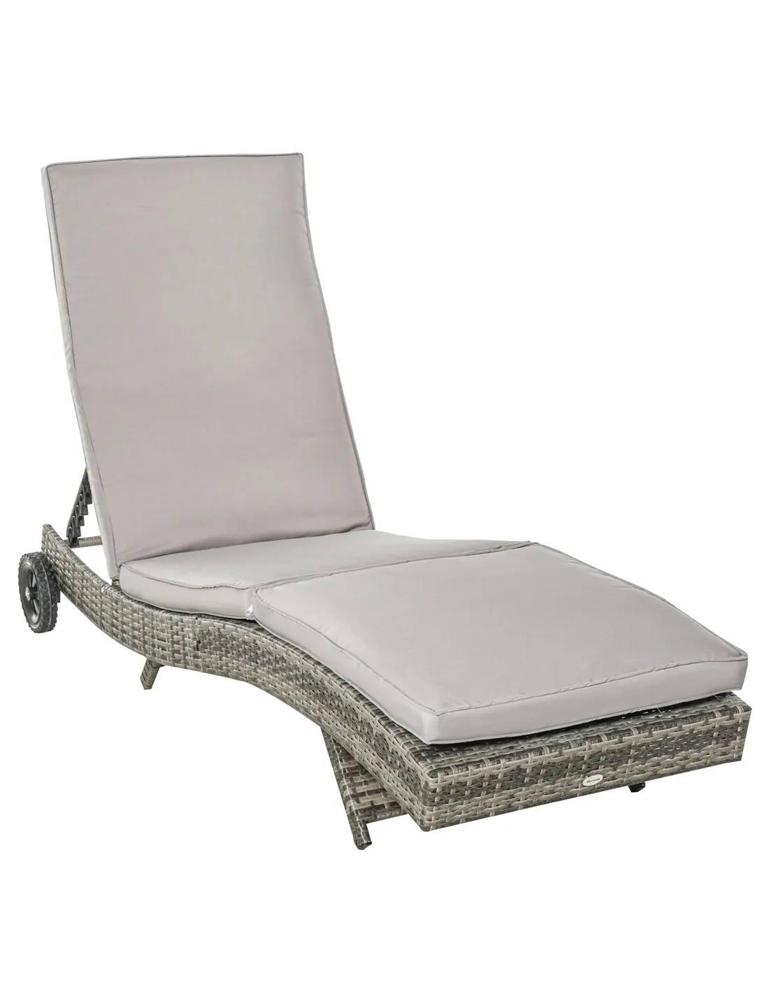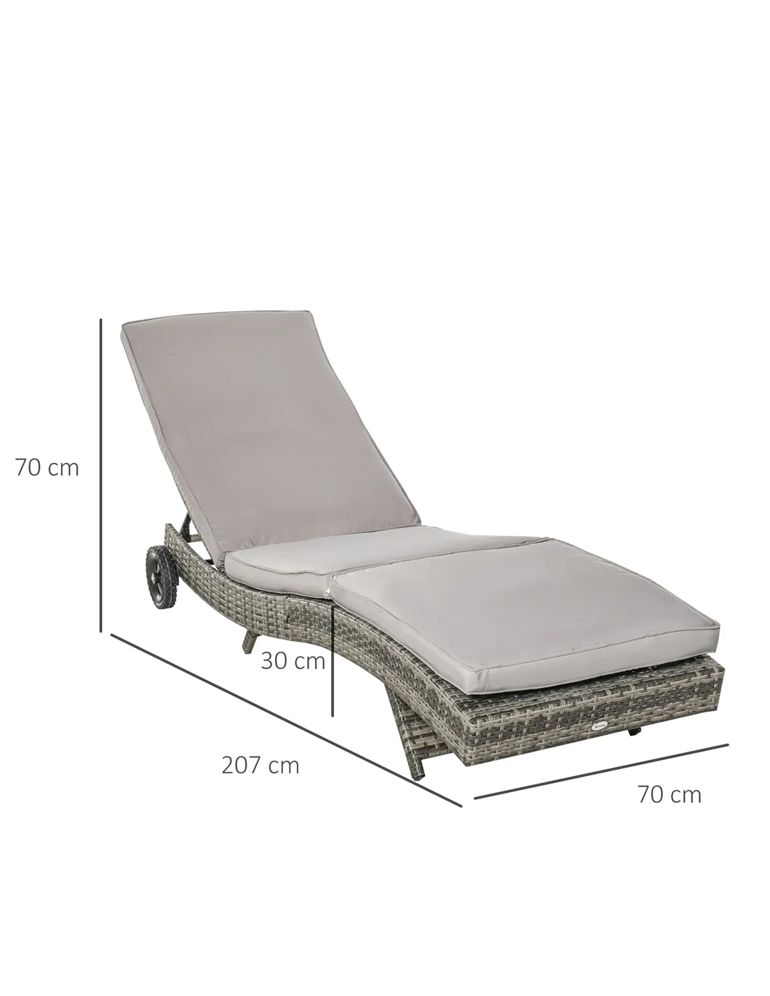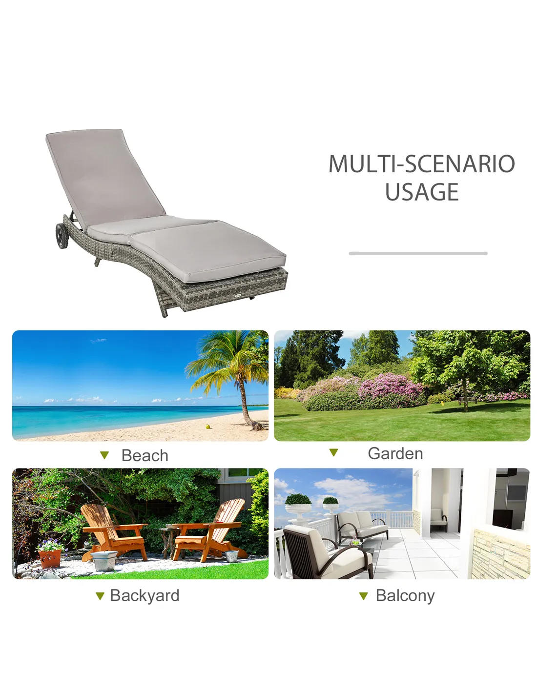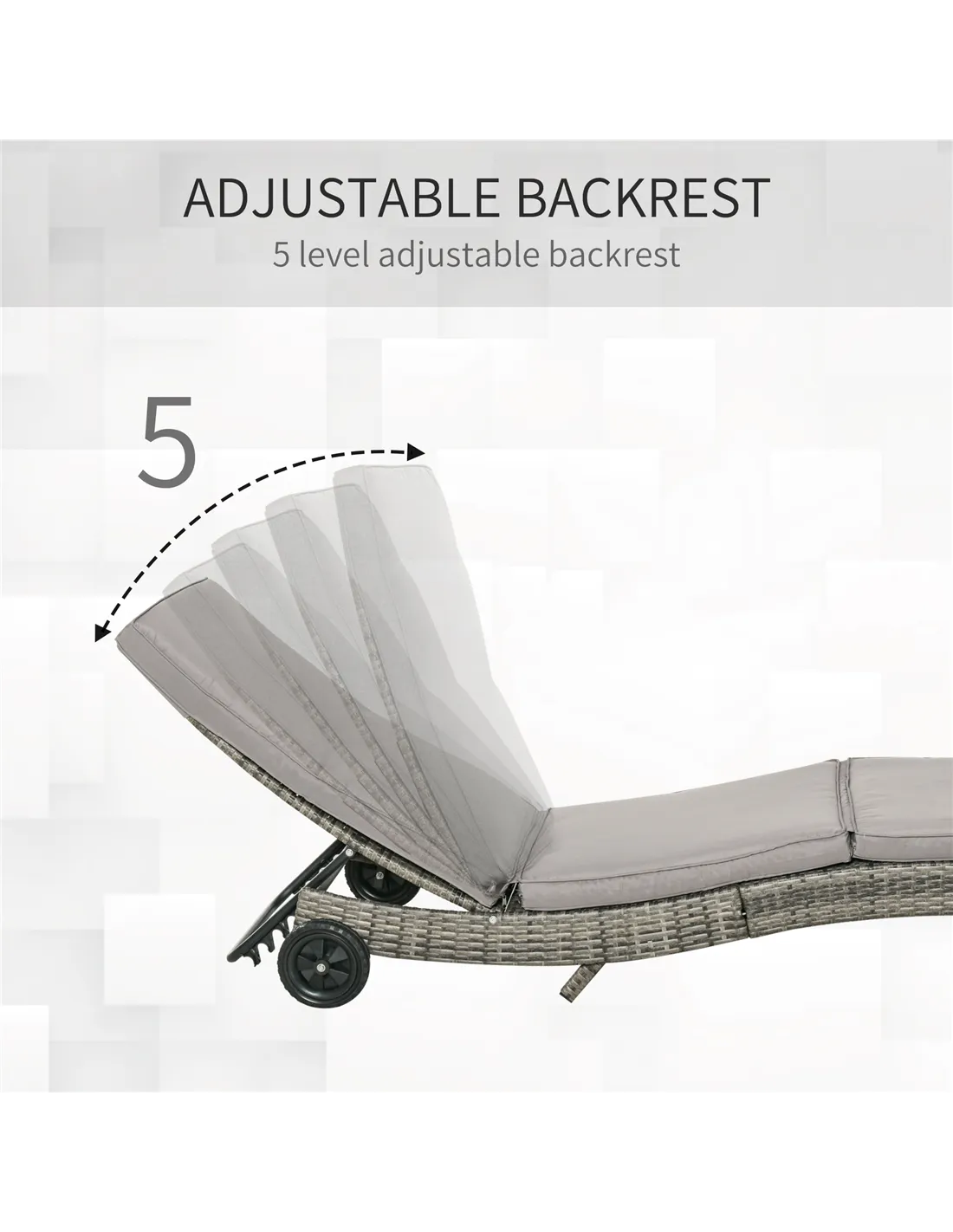 Outsunny Patio Wicker Chaise Lounge Chair, Outdoor PE Rattan Sun Lounger with Adjustable Backrest and 2 Wheels, Grey
