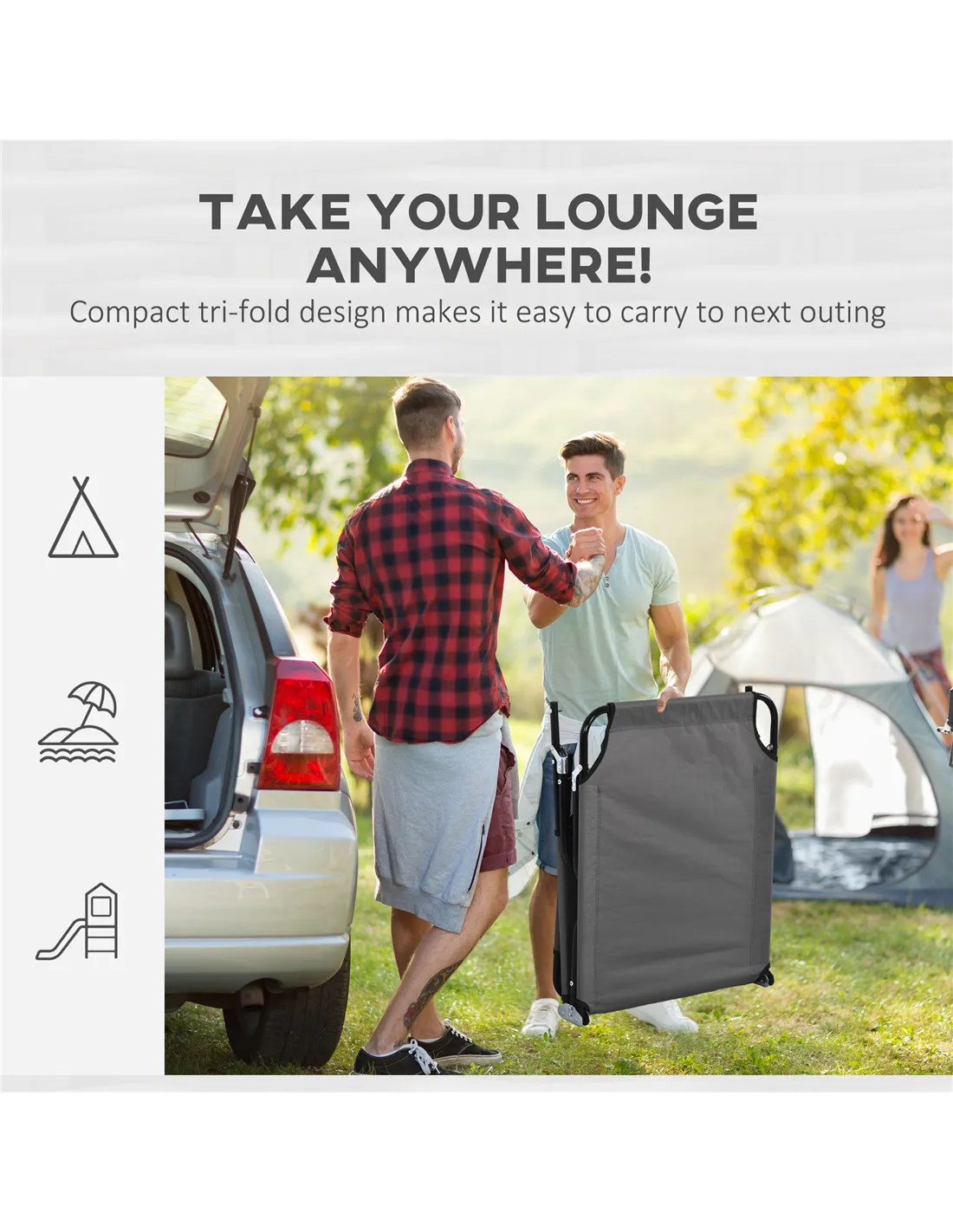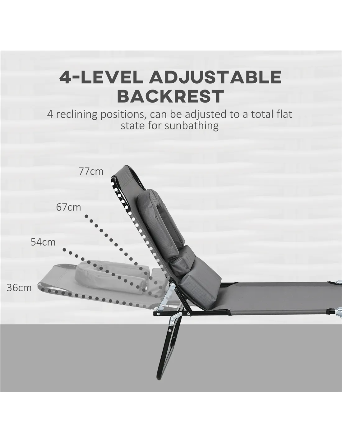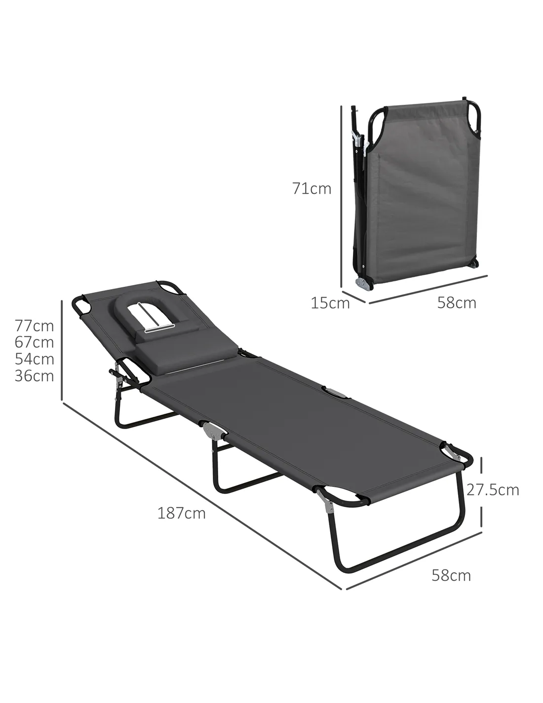 Outsunny Outdoor Folding Sun Lounger Set of 2 with Face Hole, 4 Level Adjustable Backrest Reclining Garden Lounger, Garden Recliner Sunbed with 600 D Oxford Cloth Seat and Pillow for Beach, Dark Grey