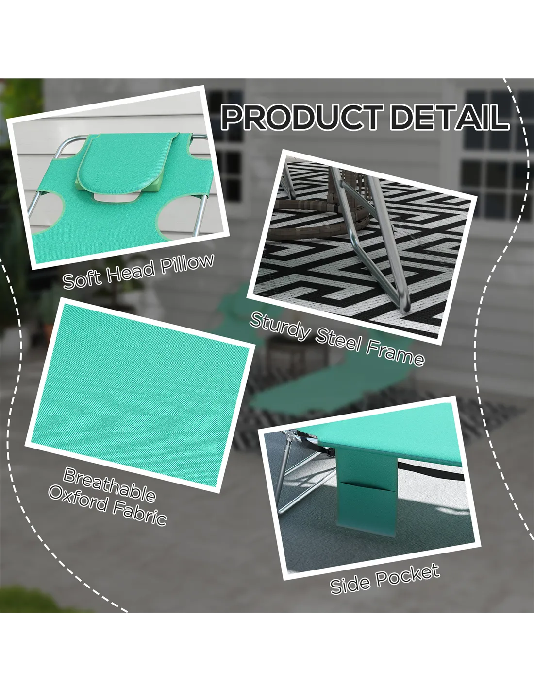 Perfect for British gardens, patios, or balconies, this Outsunny sun lounger set offers versatile comfort for outdoor relaxation. Whether sunbathing, reading your favourite novel, or enjoying a peaceful afternoon nap, the adjustable backrest with five reclining positions ensures personalised support. The padded face hole and arm slots make it ideal for lying on your front, while the breathable Oxford fabric keeps you cool during warmer days. Thanks to its foldable design and carry strap, it’s easy to transport to the beach, park, or camping trips. The handy side pocket provides convenient storage for essentials like magazines, phones, or sunglasses, making it a practical addition to any outdoor setting.