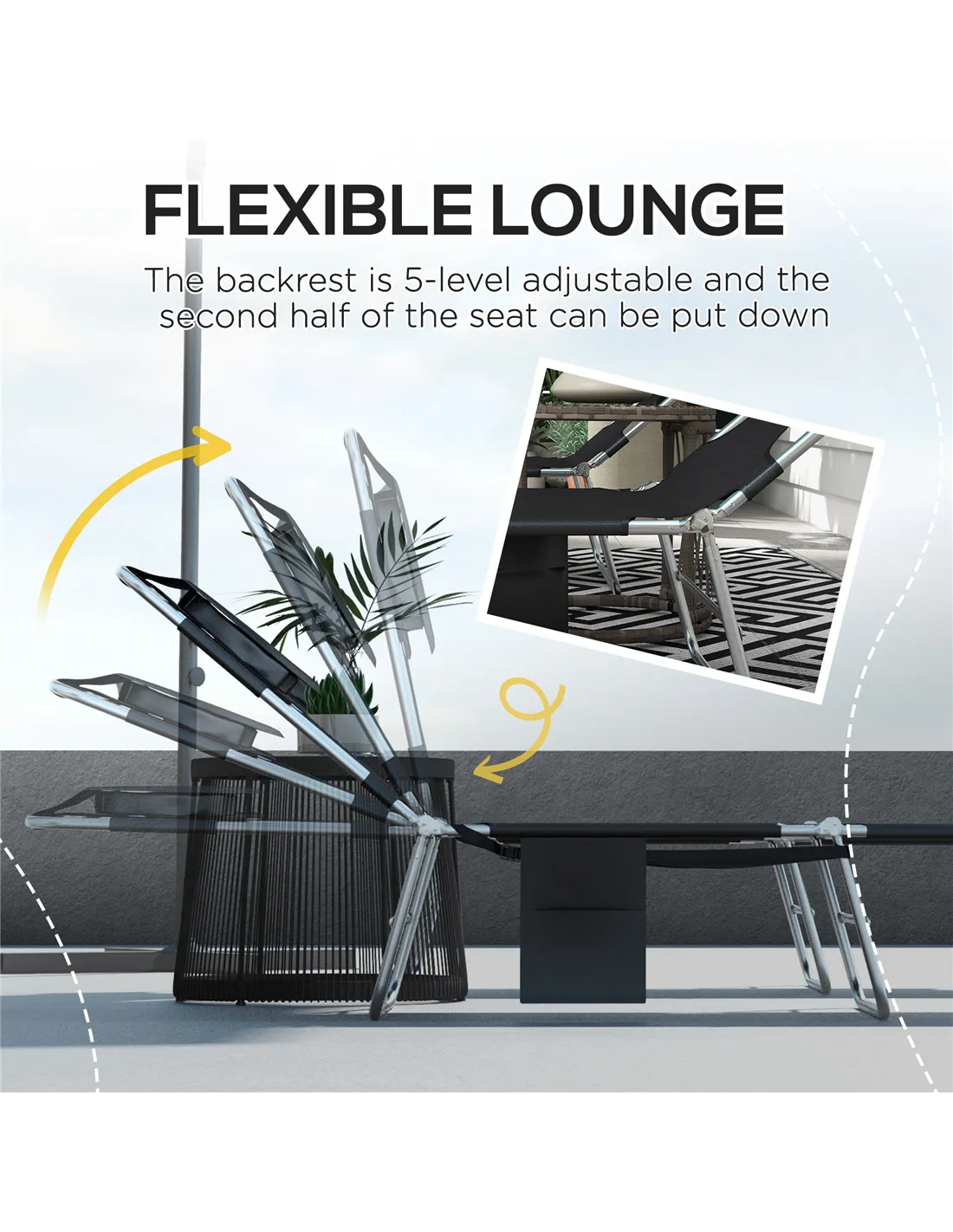 - Great addition to poolside areas, providing adjustable reclining positions for sunbathing or reading by the water.