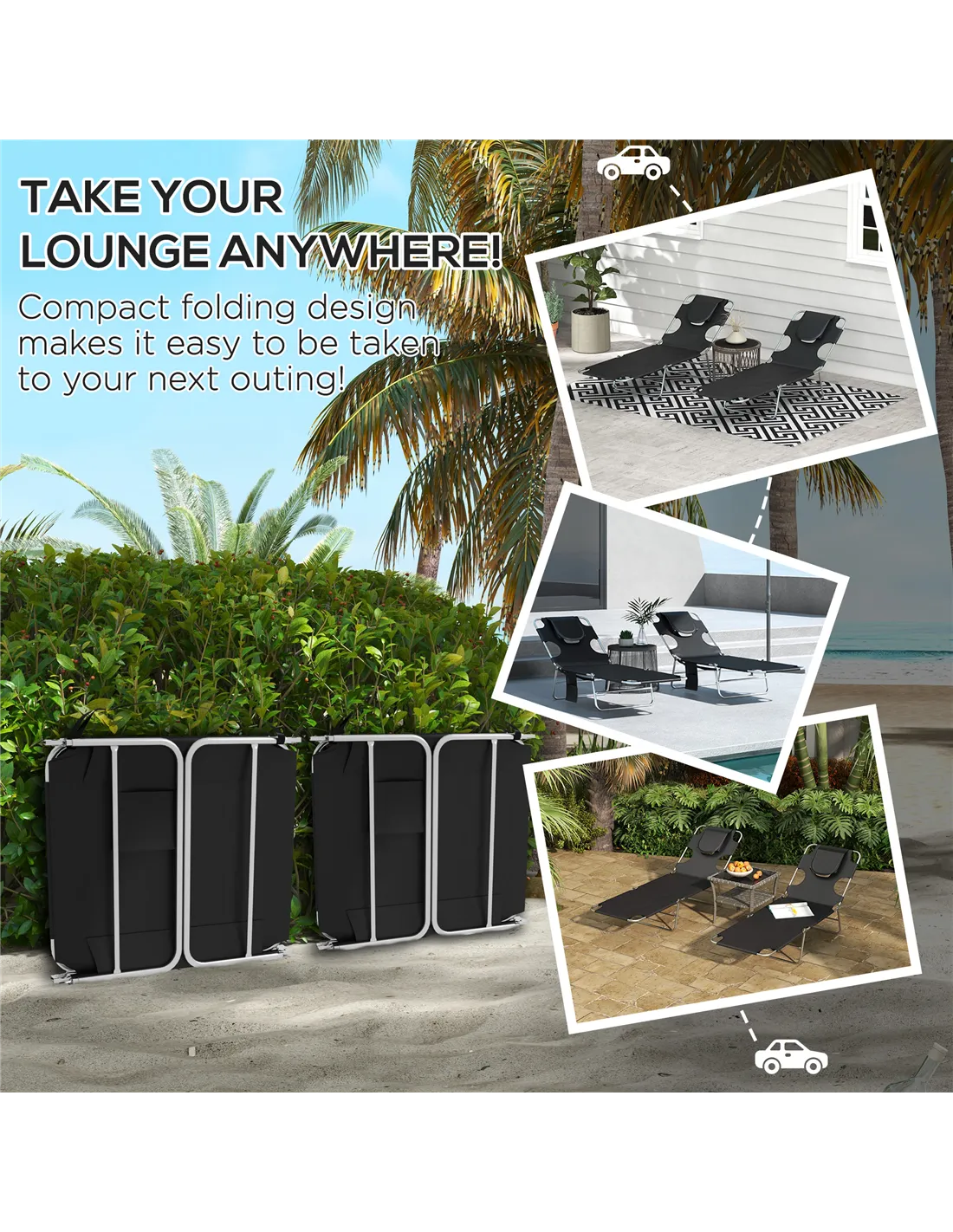 - Sun lounger is easy to store and transport with folding design