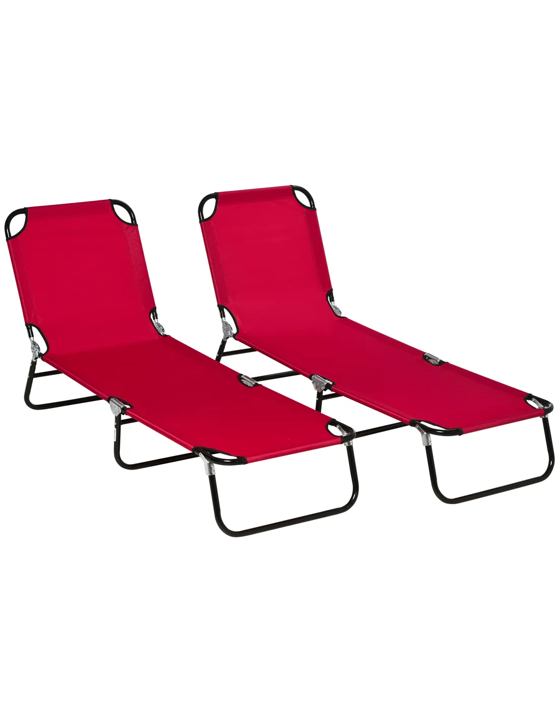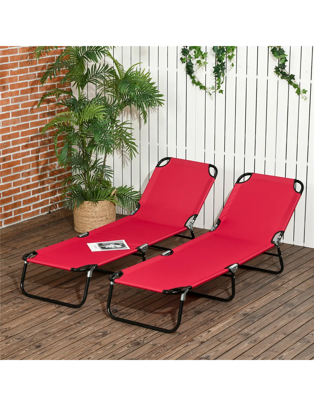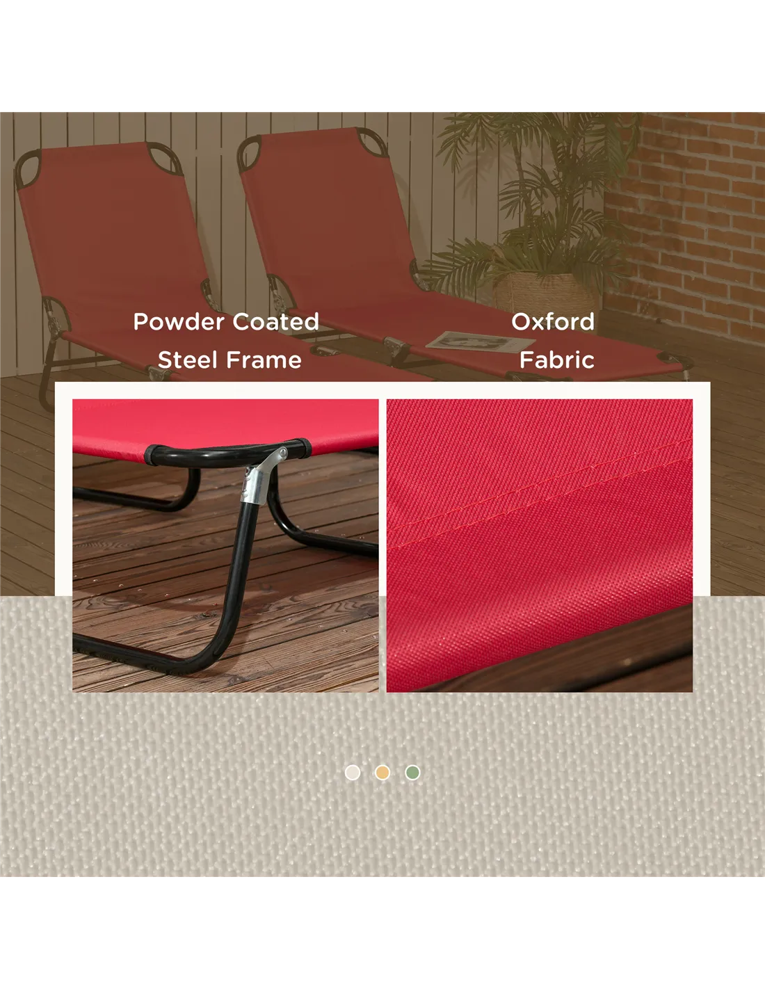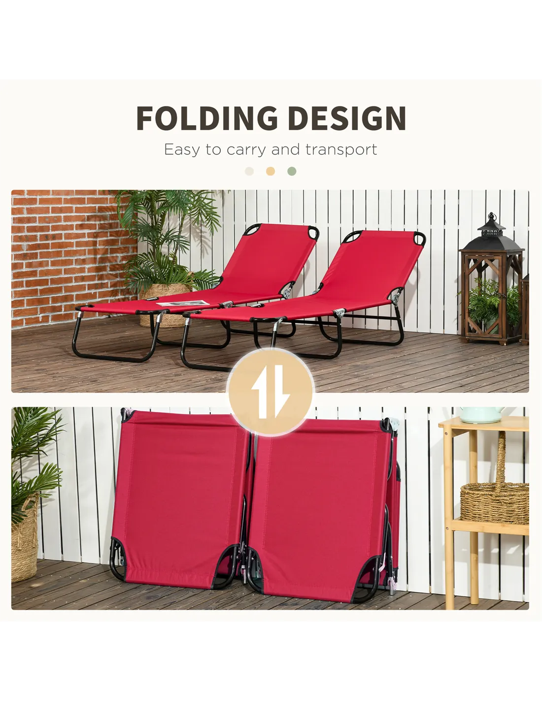 Outsunny Folding Sun Loungers Set of 2, Outdoor Day Bed with 5-Position Adjustable Backrest, Portable Recliner Garden Chairs with Breathable Mesh for Beach, Patio, Wine Red