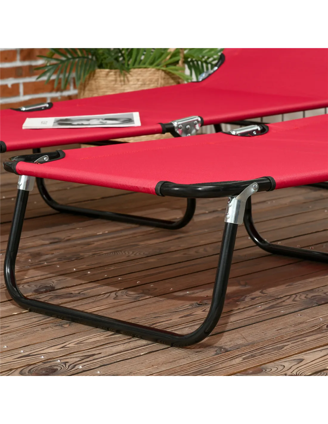 This set of two sun loungers, from Outsunny, means you and a friend can sunbathe outdoors in comfort. Both folding garden sun loungers feature reclining backs - set between the five positions; pick the angle you like most. Powder coated steel frames for a strong and supportive core; the outdoor day bed can be folded to carry and store easily.