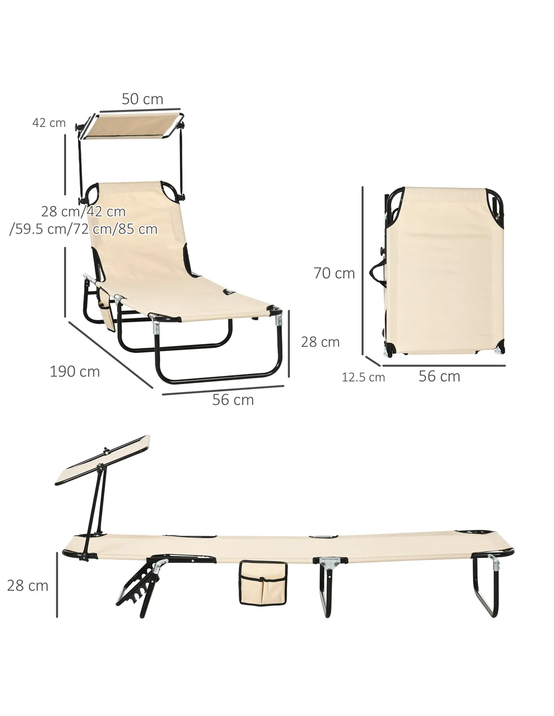 This set of two Outsunny sun loungers means you and a friend can sunbathe outdoors in comfort. Both feature reclining backs - set between the five positions; a sunshade roof - pick the angle you like most. Powder coated steel frames for a strong and supportive core; the folding garden sun loungers can be folded to carry and store easily.