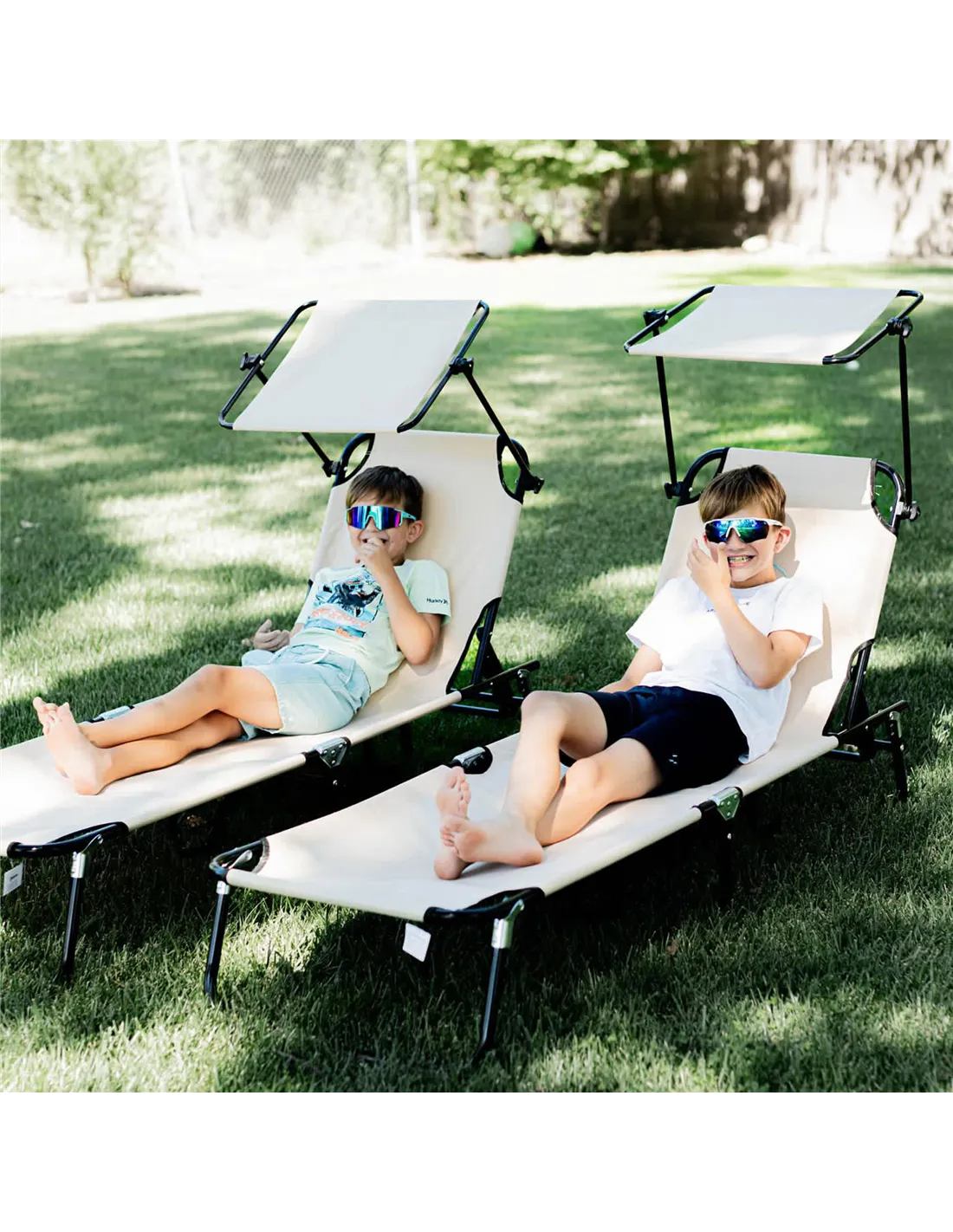 - Perfect for relaxing by the poolside, these folding loungers offer adjustable comfort while you soak up the sun.