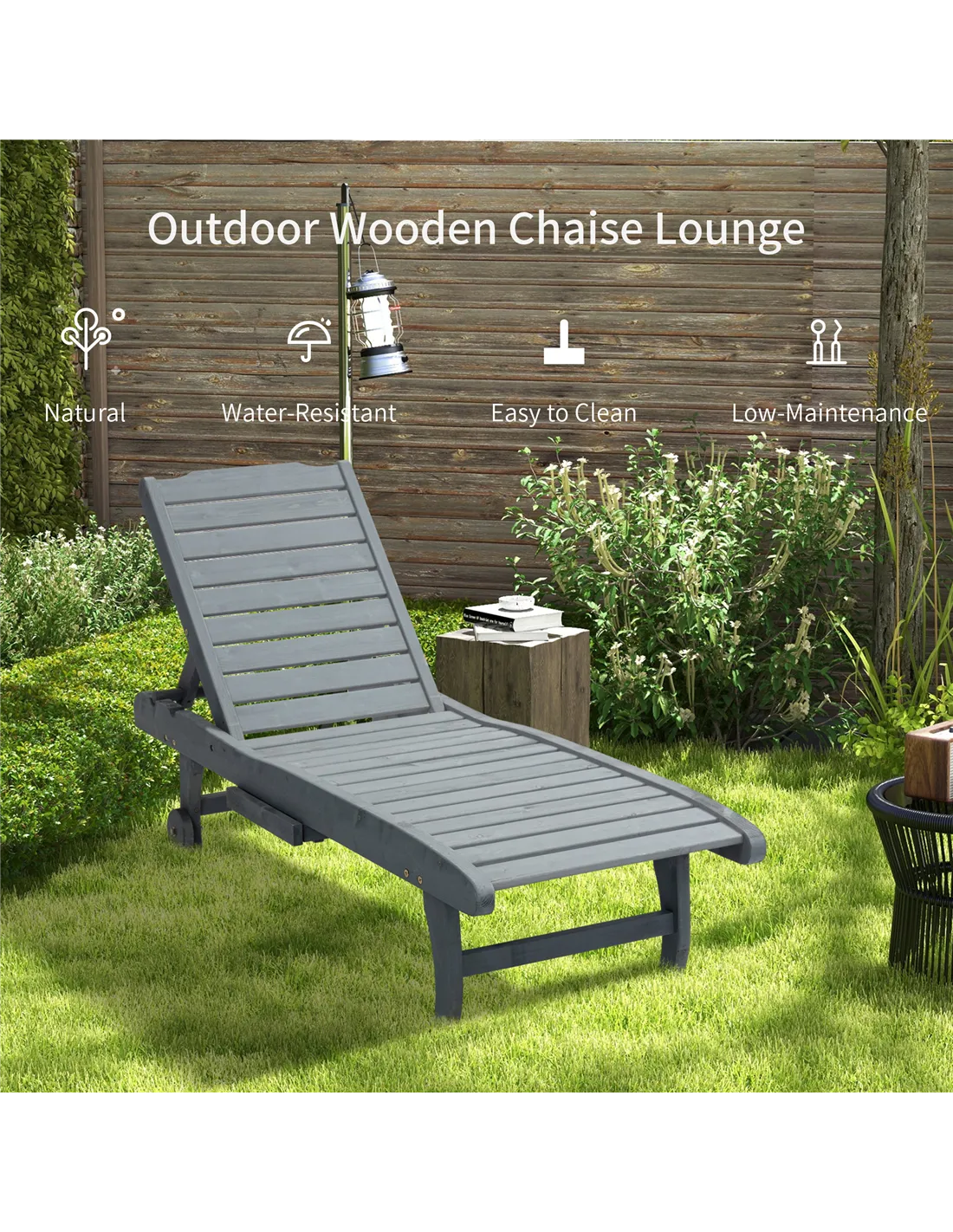 The Outsunny wooden sun lounger is perfect for enhancing your garden or patio space, offering a comfortable spot for sunbathing, reading, or relaxing outdoors. Its adjustable backrest allows you to recline at three different angles, ideal for lounging with a book or catching some rays. The built-in side table is convenient for keeping refreshments or personal items within easy reach, making it a practical addition to any outdoor setting. Thanks to its sturdy fir wood construction and rolling wheels, it can be effortlessly moved to follow the sun or shade throughout the day. Consider pairing it with a cushioned pad for added comfort during long summer afternoons.